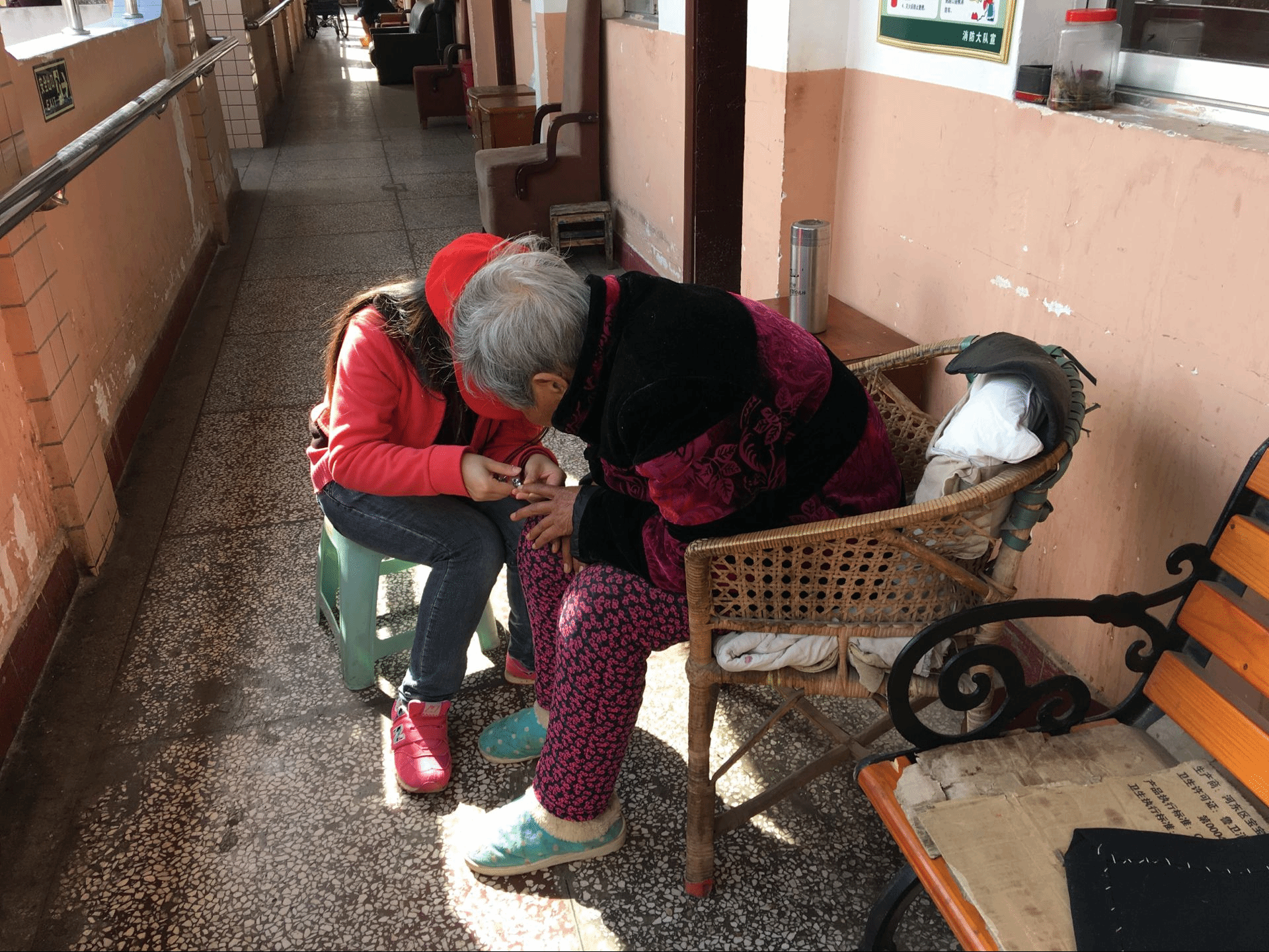 下午两点,志愿者们早已在国旗台下集合完毕。志愿者们列着整齐的方队缓缓地前进了,他们满心欢喜的期待着与老人的见面,迫不及待的想要奉献自己的一份爱心。到达公寓后,领队的负责人向志愿者再三强调要以安全第一的原则照顾老人,遇到听力不好的老人时要有足够的耐心,尽量提高说话音量。之后,志愿者们便两两一组的开始了志愿服务。他们拉着老人的手,漫步在阳光四溢的庭院里,听老人讲述经历的艰难岁月,感叹着今天的幸福生活;他们捶着老人的肩膀,询问着他们的健康状况,嘱咐他们要好好地爱惜自己的身体;他们梳着老人的头发,一边称赞其年轻,一边给他们讲笑话,志愿者们的幽默总是把老人逗得哈哈大笑;他们剪着老人的指甲,告诉老人一些校园里的奇闻异事,有的还窃窃私语,互相分享着彼此的小秘密,似乎成了无话不说的知心朋友……
