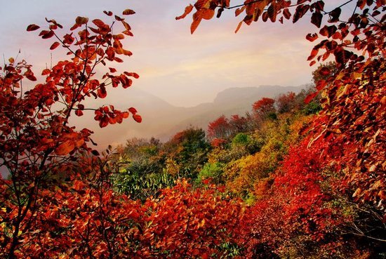 此次秋游恰逢雨后初霁,在璀璨的秋阳下,天空蔚蓝,鸟鸣山幽,风轻云淡,令人游兴盎然。大家神清气爽,纷纷健步向前,先后游览了一线天、烽王台、钻天洞、簸箕掌、摘星楼和大鸿寨主峰。深秋的大鸿寨,漫山遍野的红叶,似火如霞,把群山装扮的分外妖娆,真堪与北京香山媲美。“看万山红遍,层林尽染”,正是“只言春色能娇物,不道秋霜更媚人”。