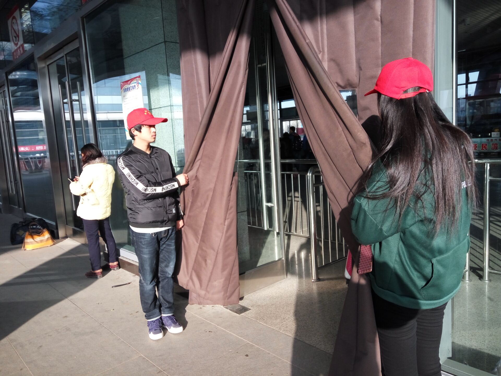 到达车站后,负责人强调相关注意事项后,志愿者们两个人一组,分布在停车场、出入口及安检处等地。 在车站入口处,志愿者们用笑脸迎接来自四面八方的乘客,回答他们的问题;在安检处,志愿者们耐心帮乘客过安检,用心保障乘客的乘车安全;出口处,志愿者们笑脸相迎,接过乘客手中的行囊,为归家的他们献上第一份温暖;车场里,志愿者们征得同意后接过乘客怀里的孩子,让疲劳的乘客得到片刻的休息。虽然站在不同的岗位上,但志愿者们只要看到有困难的乘客,都会主动过去询问情况并给予帮助。他们穿梭于车站的各个角落,不求回报,不奢赞美,只愿献出自己的爱心。虽然时值冷冬,但依稀可见志愿者的脸上渗出的细微汗珠。