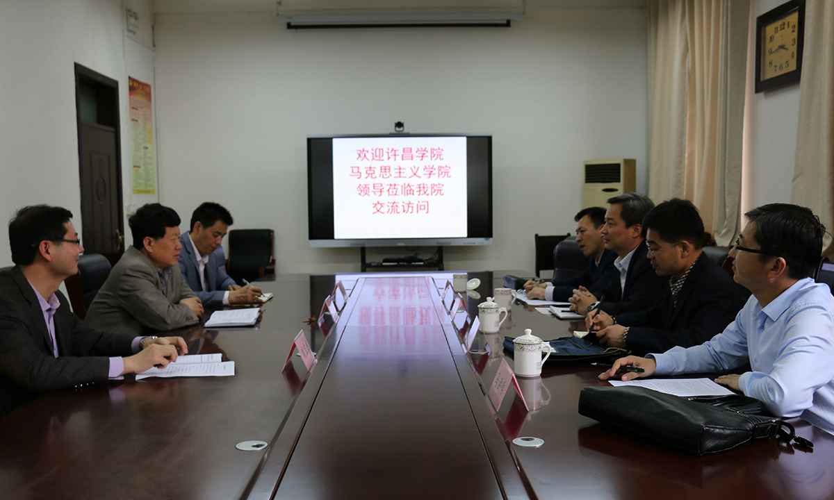 许涛书记介绍了我校马克思主义学院的学科建设、队伍建设以及思想政治理论课改革情况。双方就实践教学、传统文化融入思想政治理论课、提升教学实效性等问题进行了切磋交流,达成了许多共识。