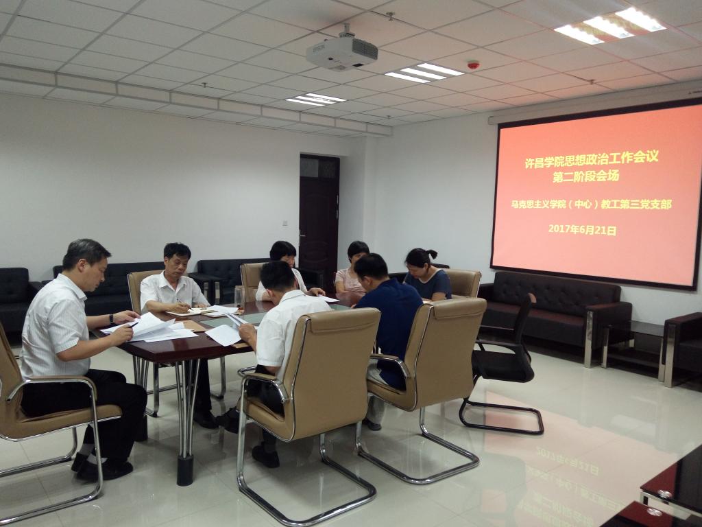 21日下午5点,马克思主义学院(中心)第三教工党支部围绕陈建国书记的讲话、赵继红传达的全国、全省高校思想政治工作会议精神和我校《关于加强和改进新形势下思想政治工作的实施意见(征求意见稿)》,在E楼1120会议室组织了专题学习研讨会。