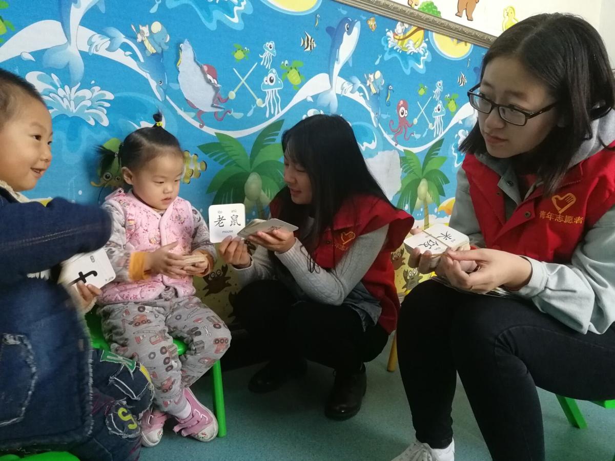 下午两点,阳光格外明媚,尽管秋风萧瑟,但志愿者们依然温暖无比,因为他们都怀揣着一颗炽热的爱心。志愿者踏着翩翩飘零的红叶,呼吸着新鲜的空气,便启程了。一路秋色宜人,伴着欢声笑语,不一会儿就到达了残联。刚踏入大门的志愿者,没走几步,就听见了窗边传来地躁动声响,抬头一看,原来是可爱的孩子们在向他们打招呼呢!志愿者们亲切地回应着,孩子们看到后,忽闪的眼睛透着笑意,如同阳光下的向日葵一样,朝气蓬勃。志愿者们轻声细语的走进了小孩子所在的班级,开始了一段不一样的下午。孩子们看到志愿者的心情还是一如既往的兴奋,纷纷想要和志愿者们一起玩耍。志愿者们捧着孩子们似熟透了苹果般的脸颊,开心的应答着。志愿者们陪他们堆积木,拍皮球,看动画。当小孩子哭闹时,志愿者轻轻的拍抚着,场面温馨极了;当玩积木时,志愿者参与其中,小孩子们玩的不亦说乎,开心又感动着;当志愿者们陪着小孩子做游戏时,孩子们快乐并幸福着。这一切的一切如同一幅美丽和谐的画卷般,单纯又不失美好。耐心的志愿者们教他们读书,写字,练读拼音,可爱的孩子们也听得十分认真。孩子们仿佛像个小大人一样,认真的读起了书,朗朗的读书声穿过窗户,跨过走廊,声音传出了很远,很远……志愿者们倾听着孩子们的声音,走进他们的内心世界,渴望与之感通,用真情浇灌他们幼小的心灵,用爱心架起他们腾飞的翅膀。