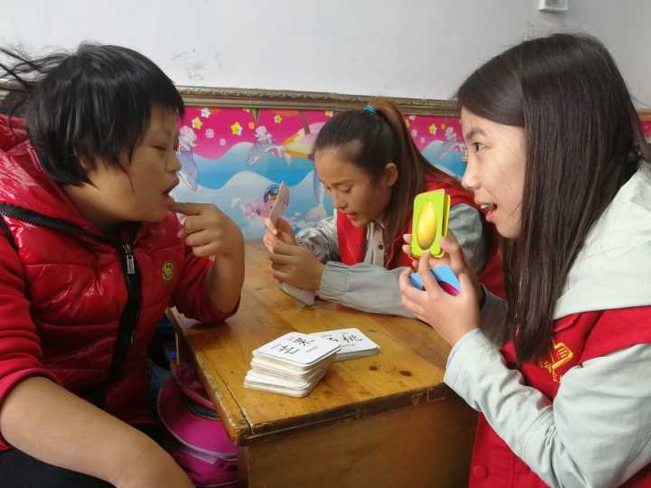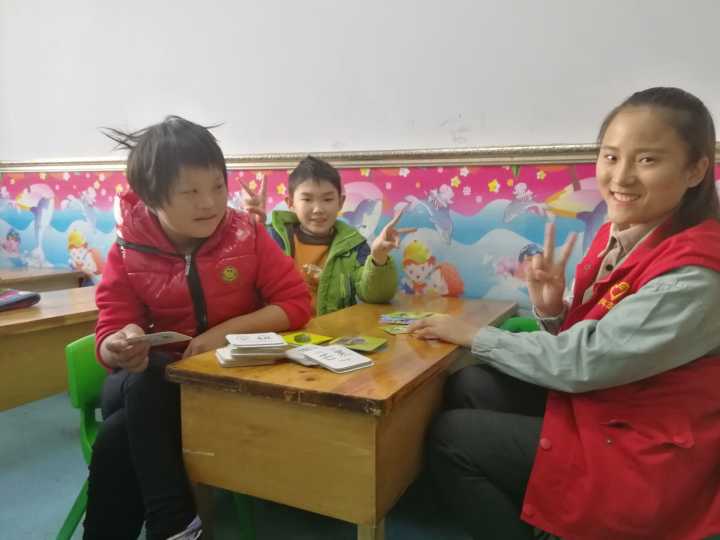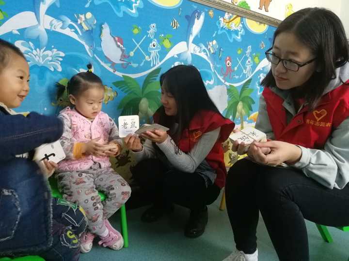 下午两点,阳光格外明媚,尽管秋风萧瑟,但志愿者们依然温暖无比,因为他们都怀揣着一颗炽热的爱心。志愿者踏着翩翩飘零的红叶,呼吸着新鲜的空气,便启程了。一路秋色宜人,伴着欢声笑语,不一会儿就到达了残联。刚踏入大门的志愿者,没走几步,就听见了窗边传来的躁动声响,抬头一看,原来是可爱的孩子们在向他们打招呼呢!志愿者们亲切的回应着,孩子们看到后,忽闪的眼睛透着笑意,如同阳光下的向日葵一样,朝气蓬勃。志愿者们轻声细语的走进了小孩子所在的班级,开始了一段不一样的下午。孩子们看到志愿者的心情还是一如既往的兴奋,纷纷想要和志愿者们一起玩耍。志愿者们捧着孩子们似熟透了苹果般的脸颊,开心的应答着。志愿者们陪他们堆积木,拍皮球,看动画。当小孩子哭闹时,志愿者轻轻的拍抚着,场面温馨极了;当玩积木时,志愿者参与其中,小孩子们玩的不亦说乎,开心又感动着;当志愿者们陪着小孩子做游戏时,孩子们快乐并幸福着。这一切的一切如同一幅美丽和谐的画卷般,单纯又不失美好。耐心的志愿者们教他们读书,写字,练读拼音,可爱的孩子们也听得十分认真。孩子们仿佛像个小大人一样,认真的读起了书,朗朗的读书声穿过窗户,跨过走廊,声音传出了很远,很远……志愿者们倾听着孩子们的声音,走进他们的内心世界,渴望与之感通,用真情浇灌他们幼小的心灵,用爱心架起他们腾飞的翅膀。