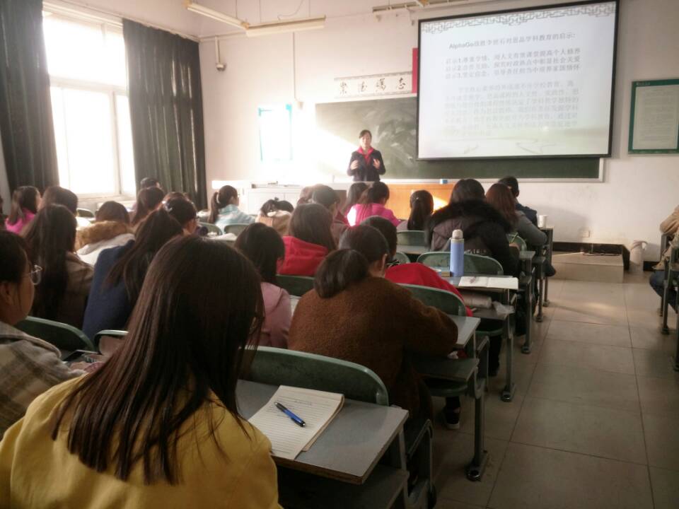 魏巍老师首场报告的题目为《优秀中学政治课教师的素养》魏老师的报告联系生活实际情况,深入浅出。本次报告主要内容分为两个部分:1.教师的专业素养。2.政治教师的素养。魏老师首先针对“素养”二字作解释说明,即素养是指一个人在从事某项工作时应具备的素质和修养。接着,魏老师讲到作为一名教师应具有专业知识、专业技能、专业情意素质三个方面的素养。魏老师特别强调教师专业技能中科研能力的培养,并结合中小学教师的实际情况讲到科研能力是一位合格教师与优秀教师的分水岭。作为一名优秀教师应该不断地学习、探索、研究课题,让中学与高校有效地衔接。在第二部分中,魏老师讲到一名优秀的政治教师应该包括四个方面:1.具有专业的敏感性,捕捉时政信息,并从时政信息中反思教学问题。2.要有思“辨”和思“变”能力。魏老师告诉同学们将来在做教师时要选择性地适应教育模式的改革并努力探索新的教育模式。在此,魏老师展示了她在教学过程中使用过的微课堂,生动有趣。并结合实际情况讲到,教师要系统地掌握课与课之间,单元与单元之间的关系。防止碎片化的教学。其前提是要有课标的指导、充分地掌握学情、认识学生的特长。根据实际情况教学。3.坚定的信念,传递正能量。4.热爱生活。报告结束之际,魏老师总结道:教师的专业发展有三个层次,1.提升教学水平,让学生受益。2.提升科研能力,让同事受益。3.提炼教学思想,让同行受益。魏老师的报告观点鲜明,趣味盎然,引人共鸣,在座的师生掌声不断,表示收获很大,受益颇多。