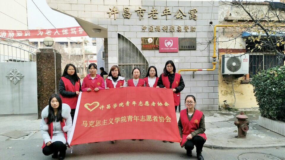 2017年12月3日,马克思主义学院青年志愿者协会的志愿者张莹莹、晋瑜、吴桐、梁梦琦、贾淑媛、肖帅敏、苏杭、汪晨曦来到了许昌市老年公寓。在这寒冷的冬日里,志愿者们给孤寂的老人送上她们的拳拳爱心。