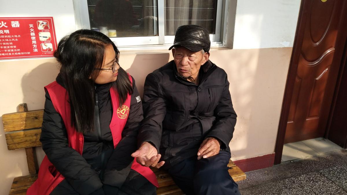 与往常不同的是本次的志愿服务是在上午,虽然上午天气非常寒冷,但志愿者们还是早早的在七点四十五分准时集合。穿上志愿者服的志愿者们精神抖擞,容光焕发,尽管寒风阵阵,但志愿者们却没有一点退缩,而是踩着坚定地步伐前往老年公寓。志愿者们坐在公交车上,透过车窗,看到冉冉上升的朝阳,想到即将见面的和蔼可亲的老人,脸上顿时露出了开心的笑容。志愿者沉浸在和老人见面的美好遐想中,不知不觉便到达了老年公寓。因为天气寒冷,所以只有很少的老人在室外活动,大部分都在室内。志愿者们一个个蹑手蹑脚的,生怕惊醒了正在休息的老人。通过向公寓管理人员地询问,志愿者们走到没有休息的老人的房门前,一边亲切的叫着“爷爷”“奶奶”,一边轻声敲门,老人们看到穿着红马甲的孩子,忙招呼着他们坐下。志愿者和老人们坐在一起,拉着他们粗糙的双手,一老一少的手紧紧握在一起,似乎象征着一种神圣的岁月传递,看起来是那么的和谐美好。老人们听着志愿者精心准备的一些小故事,目不转睛地看着志愿者栩栩如生的表演,脸上笑出了一道道皱纹,如同暖阳里的菊花般那样灿烂。志愿者们看见老人身上穿的外套,也会耐心的叮嘱他们要注意保暖。虽然只是一些平淡的话语,但是老人们的心头却涌上了一股暖意。有的志愿者还陪老人下围棋,大杀四方,纵横棋盘;有的志愿者给老人唱戏,志愿者们唱的一板一眼,有腔有调,老人们听的也如痴如醉……