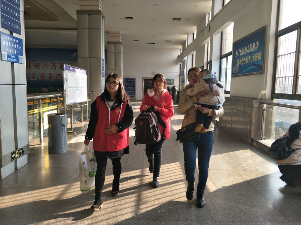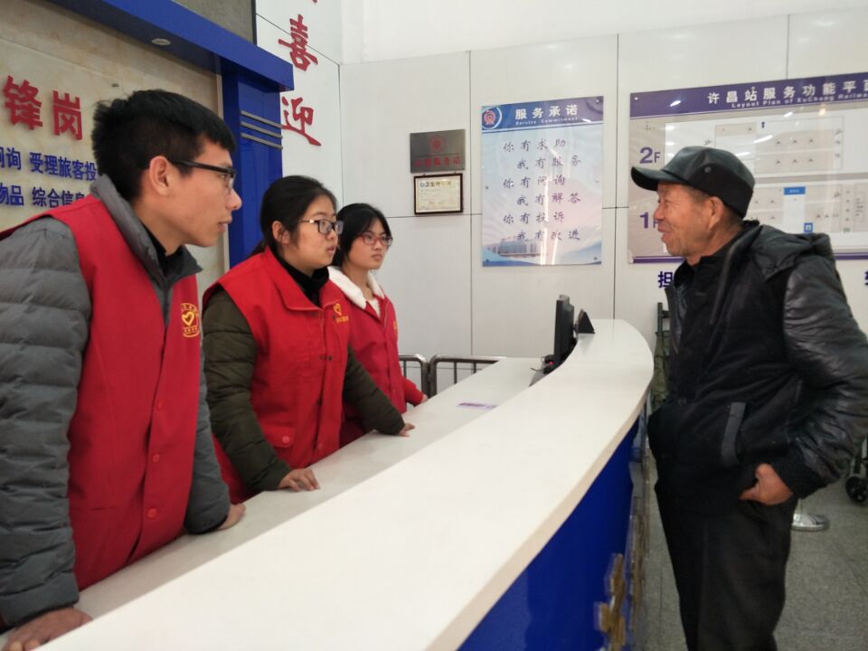 冬日暖阳充斥每一个角落,带来丝丝暖意。志愿者们于下午一点三十分准时集合在国旗台旁,在信工学院志愿者的带领下,志愿者们坐上了开往许昌市火车站的公交车。一路上,志愿者们情绪高昂,经过几个站牌后,如愿地来到目的地。带队的志愿者详细地说明活动的纪律和许多注意事项,如每个工作岗位的性质以及具体工作。随后将志愿者们分成两组,分别负责售票大厅,客运总服务台两个地方。了解各自职责后,志愿者们纷纷投入到工作中。在售票大厅内,志愿者们热情洋溢,积极主动地为他人提供帮助,解决困难问题,消除他人的疑惑和紧张感,比如,教一些人如何买票、取票,遇到退票、改签应该怎么解决等等。面对热情似火、平易近人的志愿者,旅客们都会真诚地说声“谢谢”。在客运服务总台处,志愿者为一些不知道在哪候车的旅客指明候车楼层。倘若看到满身行囊的旅客时,志愿者也会主动向前,伸出援助之手。如果遇到不明厕所在哪里、需要接水的旅客,志愿者也会一一指明地点。有一对老夫妇,因为老伴行动不便,向志愿者询问是否可以提前进站口等车。志愿者如同一阵风一般,快速奔向服务台,经过负责人的同意,志愿者搀扶着年逾花甲的老人,小心的进入站口。志愿者们不求回报,尽职尽责、全心全意的帮助他人,只为看到旅客们那一张张开心的笑脸。身着红色马甲的志愿者们如同一个个传递爱心的小精灵般活跃在车站内,诠释志愿服务的伟大之处。