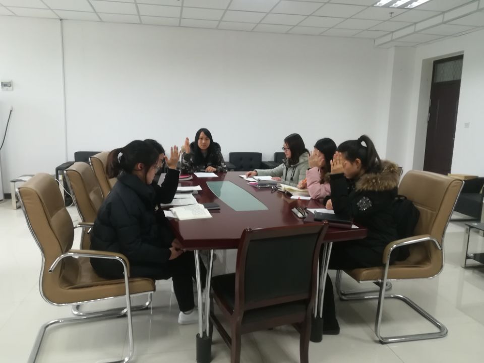 三名党员发展对象张天和、薛睿、刘科迪依次宣读入党志愿书。王欣欣老师表示作为一名合格的党员,一定要起到先锋模范作用,做同学们的领头羊、风向标,树立为同学们服务的宗旨。按照会议流程,紧接着,各党员和预备党员提出了党员发展对象工作中的优点,并根据他们的工作存在的不足提出了整改建议,如加强理论学习,合理安排学习和工作的时间,遇事冷静处理等。