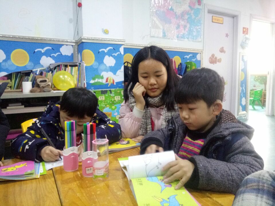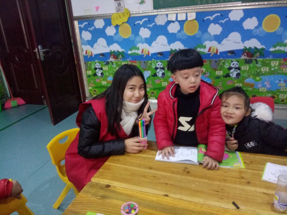 下午两点,在耀眼的阳光下,寒冷的空气中,穿着红马甲的志愿者们依旧相约在国旗台下,如同一道亮丽的风景,远远望去,温馨而又美好。陪伴孩子的时光是最快乐的,所以每当在踏上基地路途的时候,志愿者们的脸颊上总会露出淡淡的笑意,如蜂蜜般甜蜜。因为期待,所以向往。不一会的时光,志愿者们就到达了康复中心的门口。抬头仰望,远远地只看见趴在窗边孩子们天真的笑脸,他们像是期待已久的蓝精灵一样,看到志愿者姐姐的到来便开心的跳起来,志愿者看着这些热情可爱的孩子,嘴角不禁上扬,露出了会心的微笑。穿过走廊,走进教室,孩子们一下子扑进了志愿者的怀里,伸出稚嫩的双手拉着志愿者的手,并且礼貌问好。志愿者抚摸着他们粉嫩的脸颊,不由得感叹一句,“孩子们长大了!”在服务过程中,有的志愿者陪孩子们坐下,两个人就像亲密的老友般互相分享着彼此的秘密,孩子们还拿出自己珍贵的杰作向志愿者炫耀;有的志愿者十分热情耐心地教导孩子们发音、读书、识字,辅导孩子们完成作业;有的志愿者陪着孩子们看动画片,一部《熊出没》的播放,让大家笑得前俯后仰,小小的教室很快便充满着欢声笑语;有的志愿者教孩子们手语,大手牵着小手,摆出颗颗爱心,场面温馨极了。时光总是在不经意之间流逝,很快又到了分别时刻,孩子们依依不舍,于是志愿者与孩子们拉钩,承诺下次还会再来。