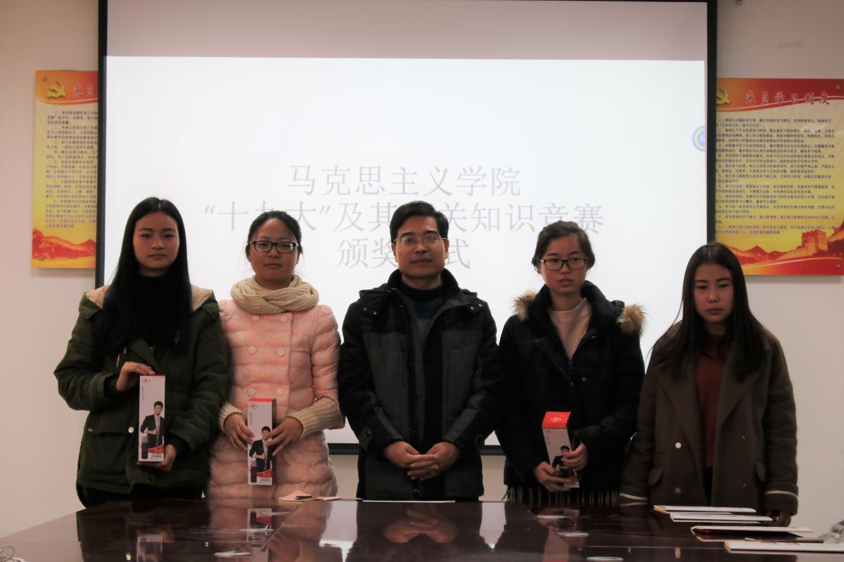 为了使同学们更加了解十九大内容,学习和贯彻十九大精神,2017年12月23日上午十点,马克思主义学院十九大知识竞赛于文科综合楼1130室顺利举办,参赛人员由大一、大二部分学生组成。比赛由方荣荣主持。