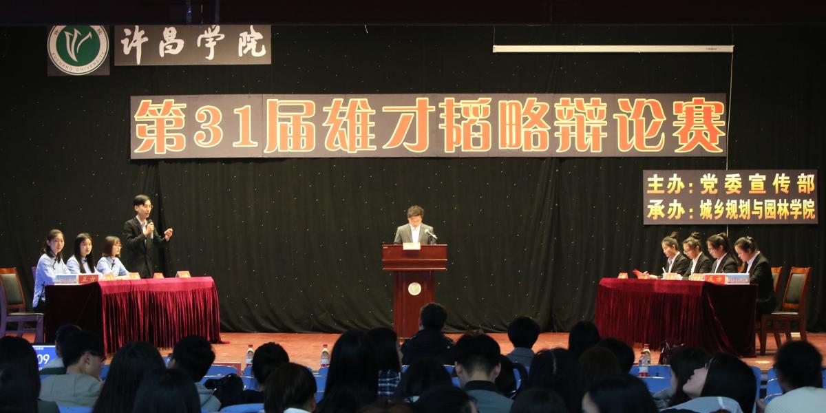 2018年3月24日,由党委宣传部主办,城乡规划与园林学院承办的许昌学院第31届“雄才韬略”辩论赛在大学生活动中心隆重举行。我院以大一、大二优秀辩手董小芳,方一惠,苏杭,姬呈河四位同学为代表参加此次辩论赛,我院全体学生到场观看并为参赛辩手加油助威。