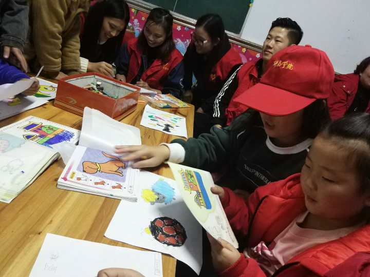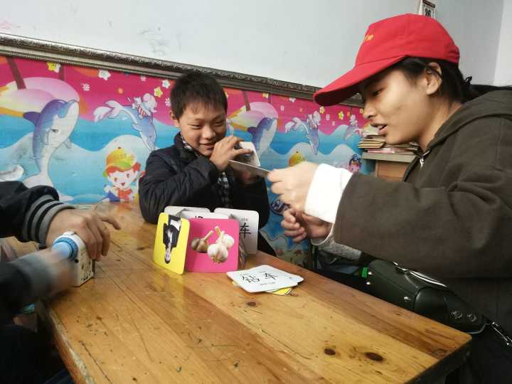 下午两点,志愿者们准时来到国旗台下集合,他们互相交流,脸上都洋溢着灿烂的笑容。志愿者们踏着满地飘零的落叶,怀着一颗炽热的爱心,一起坐上了前往残联的公车。驱车不久,志愿者们便到达了心心挂念的残联。还未进入正门,志愿者们就听到了孩子们如银铃般的笑声,于是,他们加快了脚步,很快便来到了孩子们所在的房间。推开房门,天真烂漫的孩子们齐刷刷的回头看向志愿者,他们簇拥而上,把志愿者围得水泄不通,撒娇似的叫着“姐姐”,用小手拉着志愿者的衣角,邀请志愿者一起学习。志愿者一边微笑着说:“好,好,好”一边拉着孩子们的小手,在他们身旁坐下。文化课上,志愿者陪着孩子们读书,帮助发音不正确的孩子纠正口音。面对调皮的小朋友,志愿者们不厌其烦,一遍遍的大声领读。当孩子们遇到困惑的数学题时,志愿者们也会伸出援助之手,为孩子们找到通往数学高地的捷径。手工课上,志愿者教孩子们普通的简笔画。志愿者的双手像是被注入了魔法般,不一会儿,一只憨态可掬的小猪就在志愿者笔下诞生了。孩子们用崇拜的眼光注视着志愿者,纷纷想要拜师学艺。作画时,孩子们的眼里满是认真,志愿者们静静地看着孩子们努力的侧脸,默默的微笑鼓励着。除此之外,志愿者还同孩子们一起玩游戏。虽然年龄相差很大,但孩子们却和志愿者玩的不亦乐乎,欢快的笑声飘荡在教室内,为冬日的寒冷增添了一份温暖。志愿者把阳光带给孩子们,用爱心与耐心在孩子的心里筑起了希望的大树。