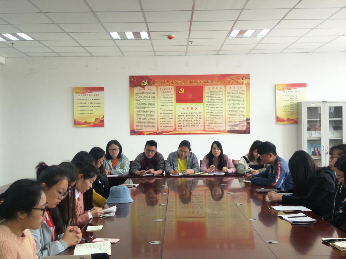 为了以公开竞聘的方式实现优秀学生干部换届,在原有团总支学生会基础上,组建我院新一届团总支学生会,充分发挥其自我管理、自我教育、自我服务的职能。我院在2018年3月30日9:15于文科综合楼1130会议室进行了马克思主义学院第二届团总支学生会学生干部换届竞选工作。出席本次会议的人员有:马克思主义学院团总支书记张静、16级辅导员王欣欣和17级辅导员李星睿以及学生会主席薛睿、团总支副书记焦茵,还有部分参与本次竞选的团总支学生会成员。会议由团总支书记张静主持。
