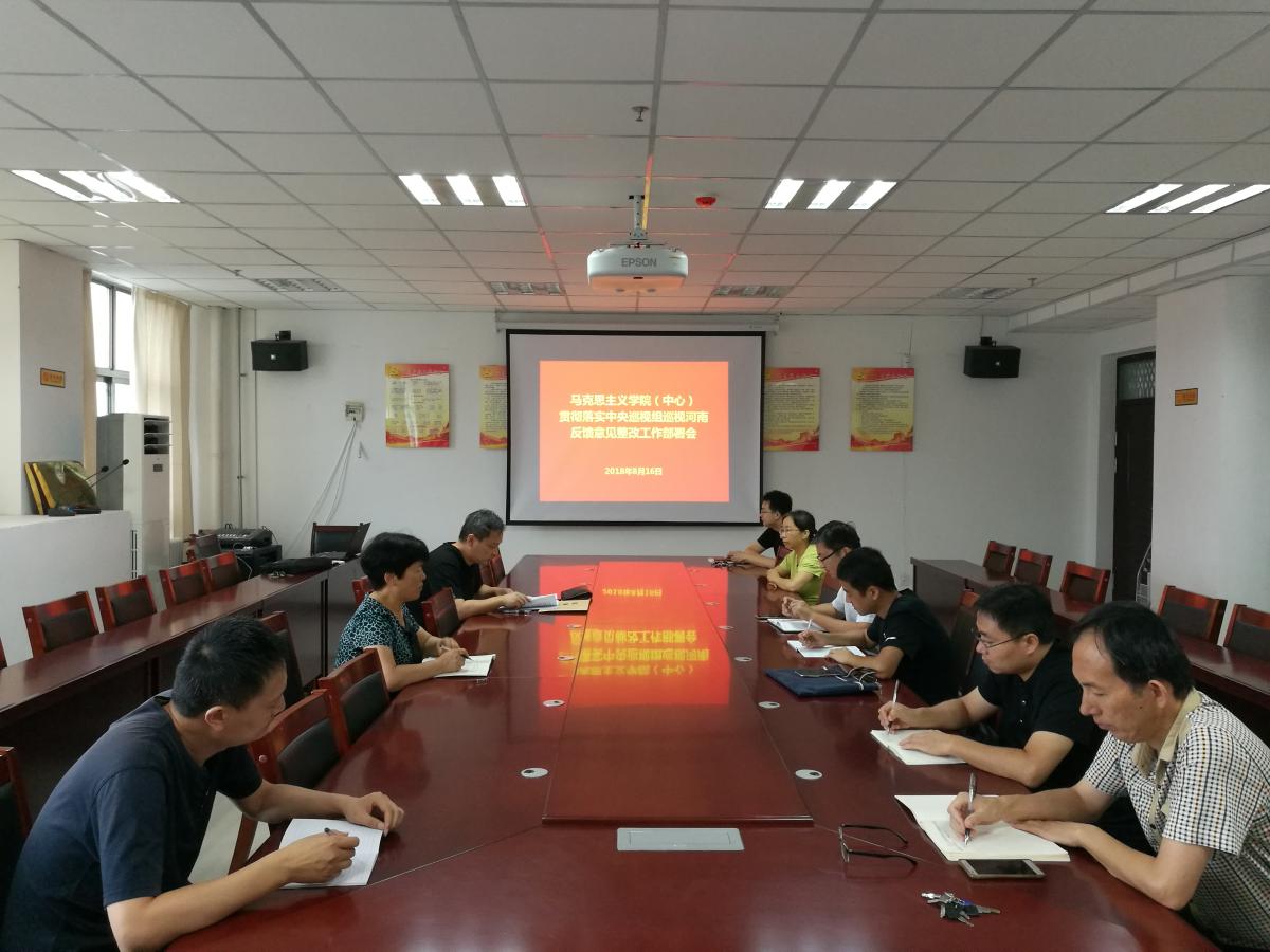 8月16日下午,马克思主义学院在E-1130会议室召开贯彻落实中央巡视河南反馈意见整改工作会议,贯彻落实学校党委工作部署。我院领导班子成员、党总支委员、党支部书记、党员教研室主任、部分党员教师参加了会议。会议由党总支书记许涛主持。