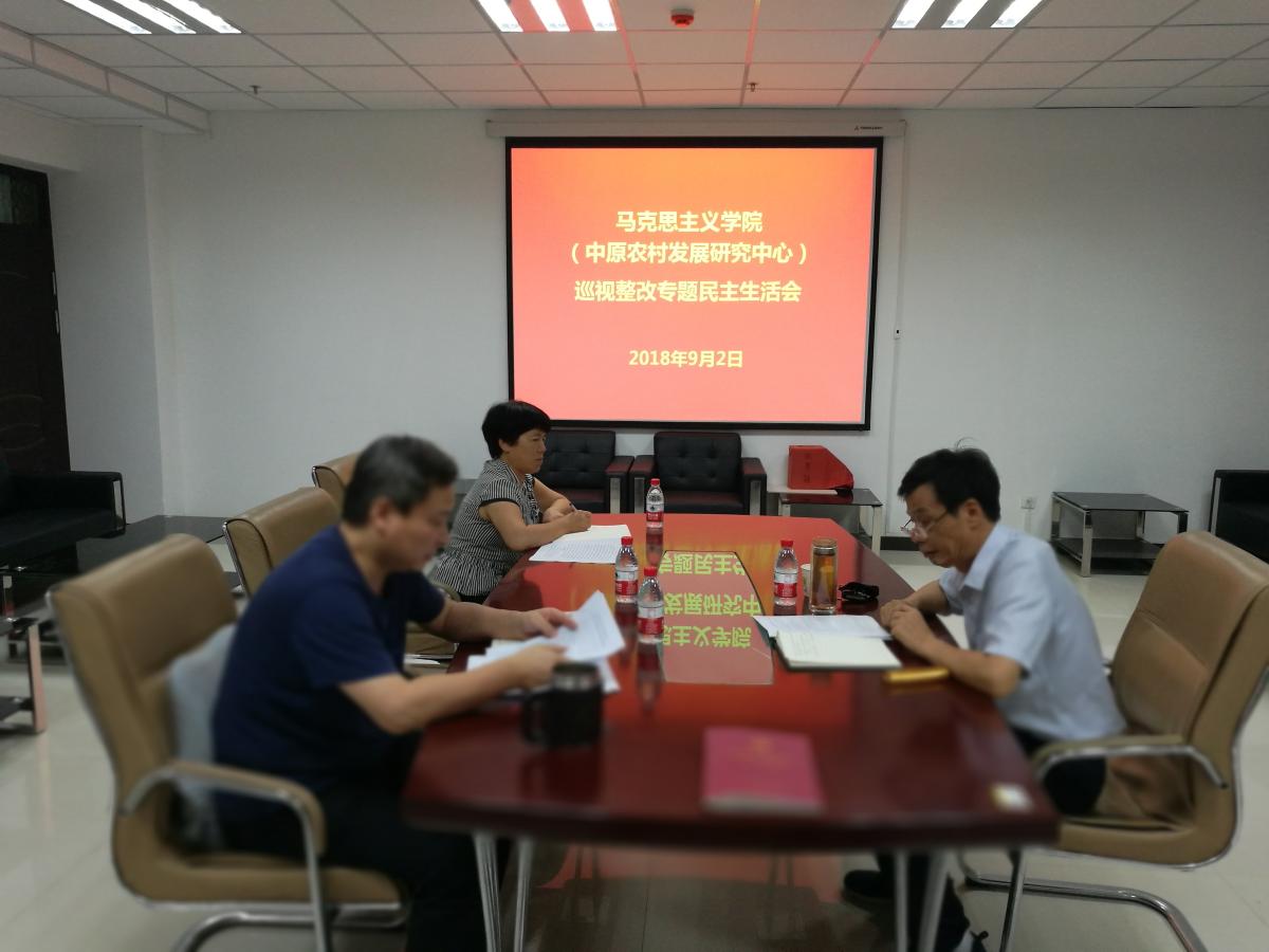 按照中央巡视河南反馈意见和学校党委部署要求,9月2日晚上,我院(中心)领导班子召开巡视整改专题民主生活会。会议深入学习贯彻习近平新时代中国特色社会主义思想和党的十九大精神,聚焦中央巡视河南反馈的问题和提出的要求,按照学校党委工作部署,严肃开展批评和自我批评,明确了整改方向和具体措施,强调以政治建设为统领,提高党的建设质量,推动我院(中心)教育教学事业改革创新发展。