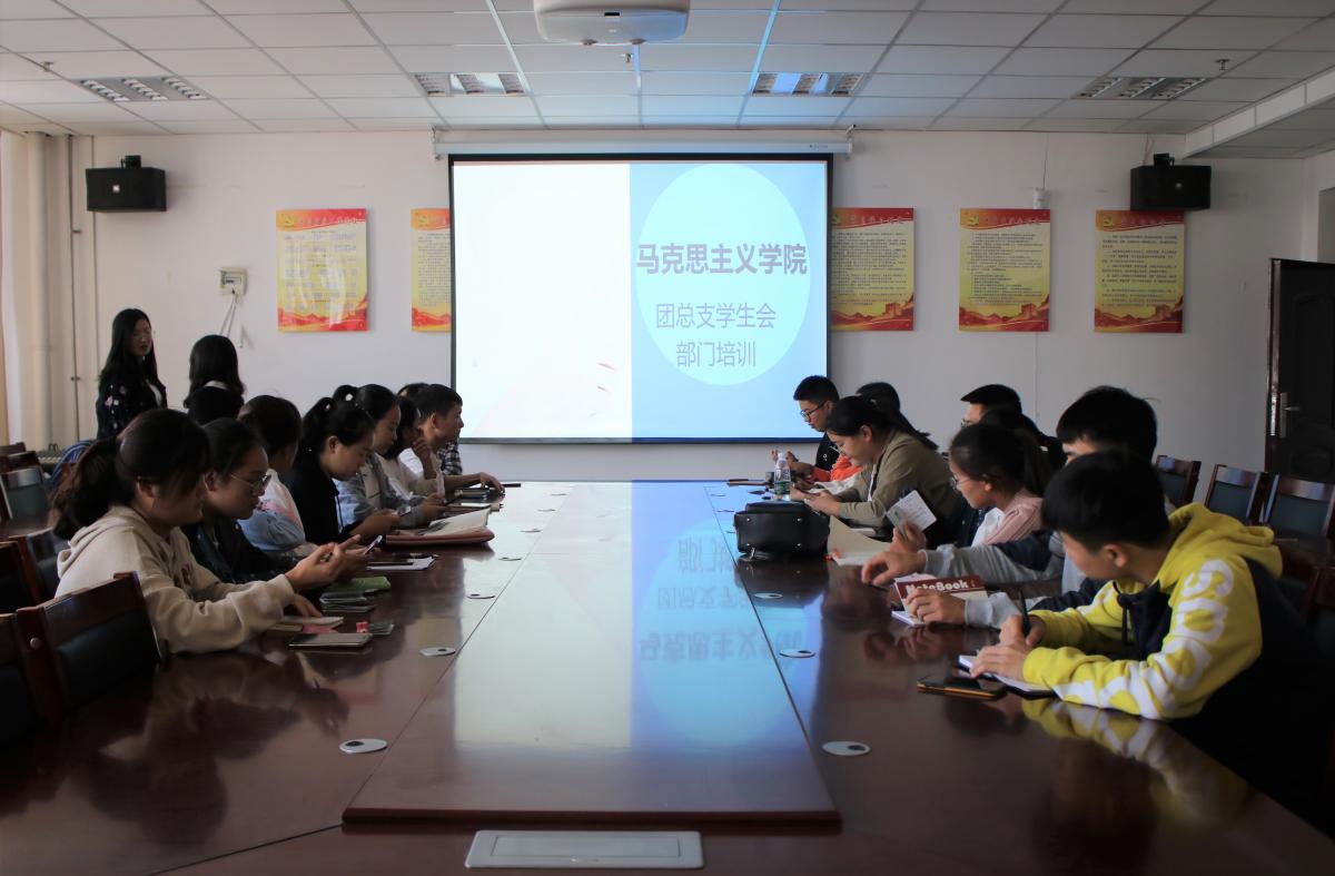 为了能让团总支学生会新成员充分了解工作要求,尽快适应工作,2018年10月12日下午,由马克思主义学院团总支学生会组织开展的部门培训会于文科综合楼1130室举行。参加本次部门培训会的有马克思主义学院团总支学生会主席王闯、学生会副主席方一惠、宣传部部长吕坤与副部长卢治媛、办公室副主任付晓婷,以及团总支学生会新成员们及18级班委。
