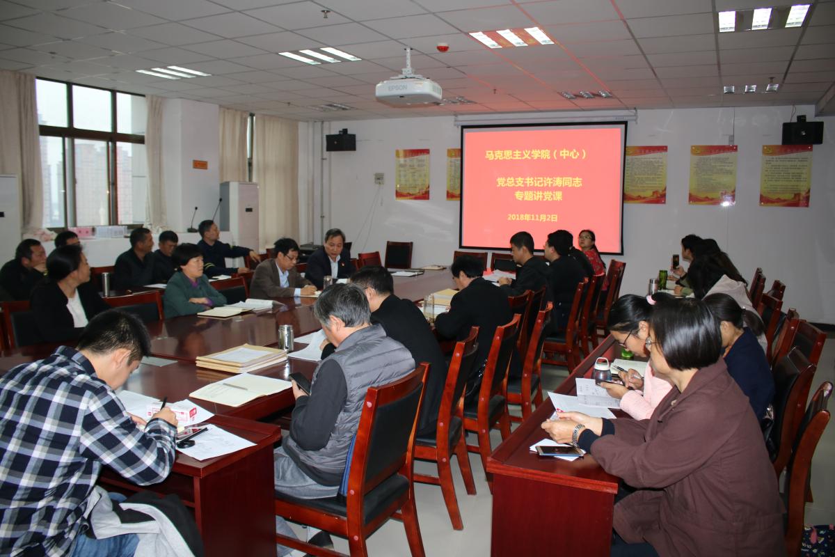 11月2日下午,马克思主义学院(中原农村发展研究中心)召开党总支书记上党课专题学习会议。党总支书记许涛同志以“充分认识意识形态工作的极端重要性,扎实做好学院(中心)的意识形态工作”为题,为全体教职工、学生党员上了一场内涵丰富、生动活泼的专题党课。