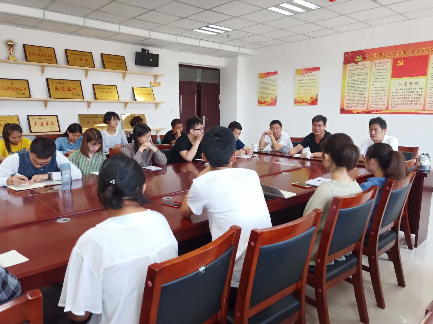 2019年3月16日上午10点,在E楼1130,中南财经政法大学郭剑仁副教授、河南大学郭广副教授,在昨天举办学术报告之余,又就考研问题与思政专业三个年级的部分学生组织座谈,活动由我院谢永鑫老师主持。