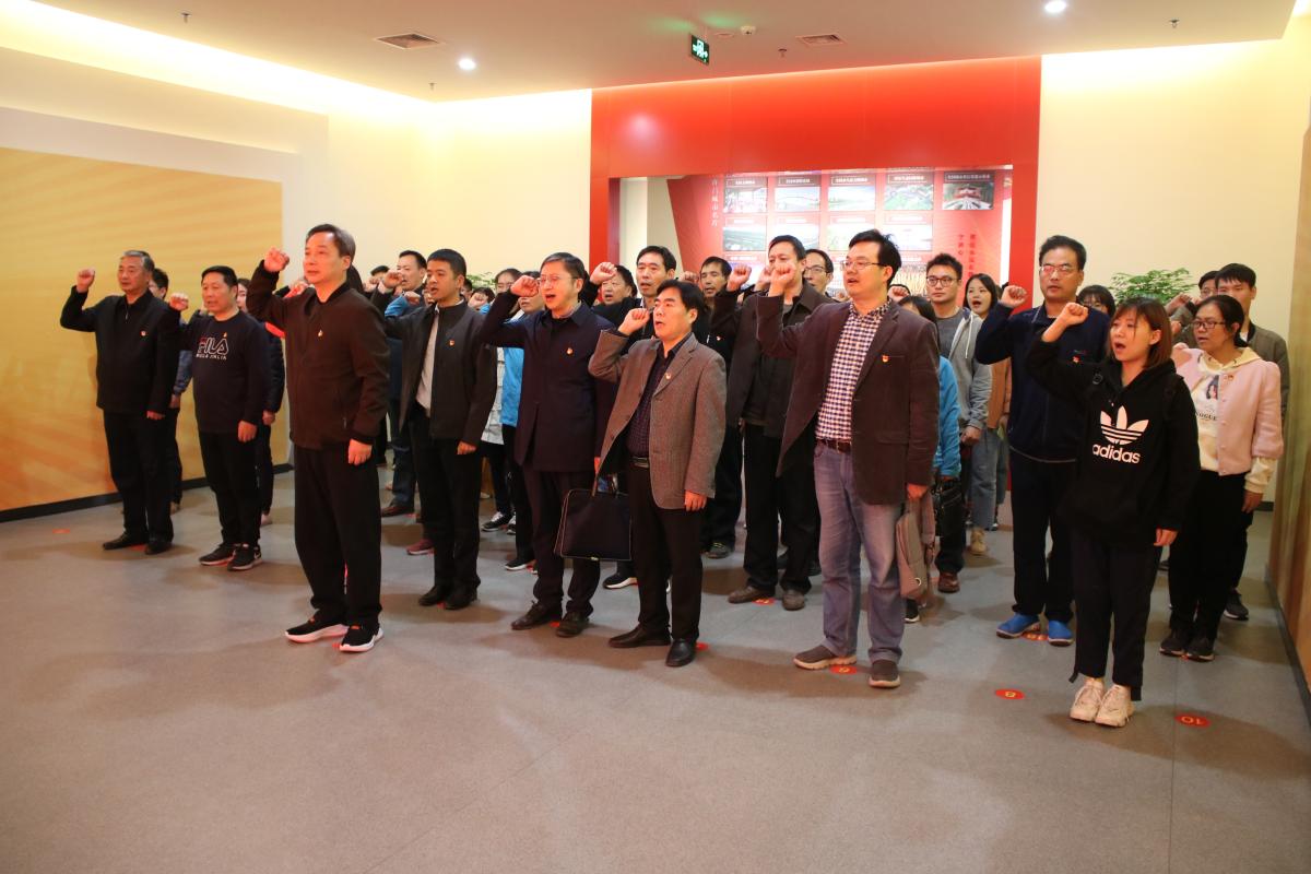 参观结束后,四十余名党员干部神情庄严、佩戴党员徽章,面对鲜艳的党旗,再一次坚定地重温了入党誓词,回顾入党时的彭拜激情和庄严承诺,誓言铮铮,字句如新、字句入心,更加坚定了大家“不忘初心、牢记使命”的信念。