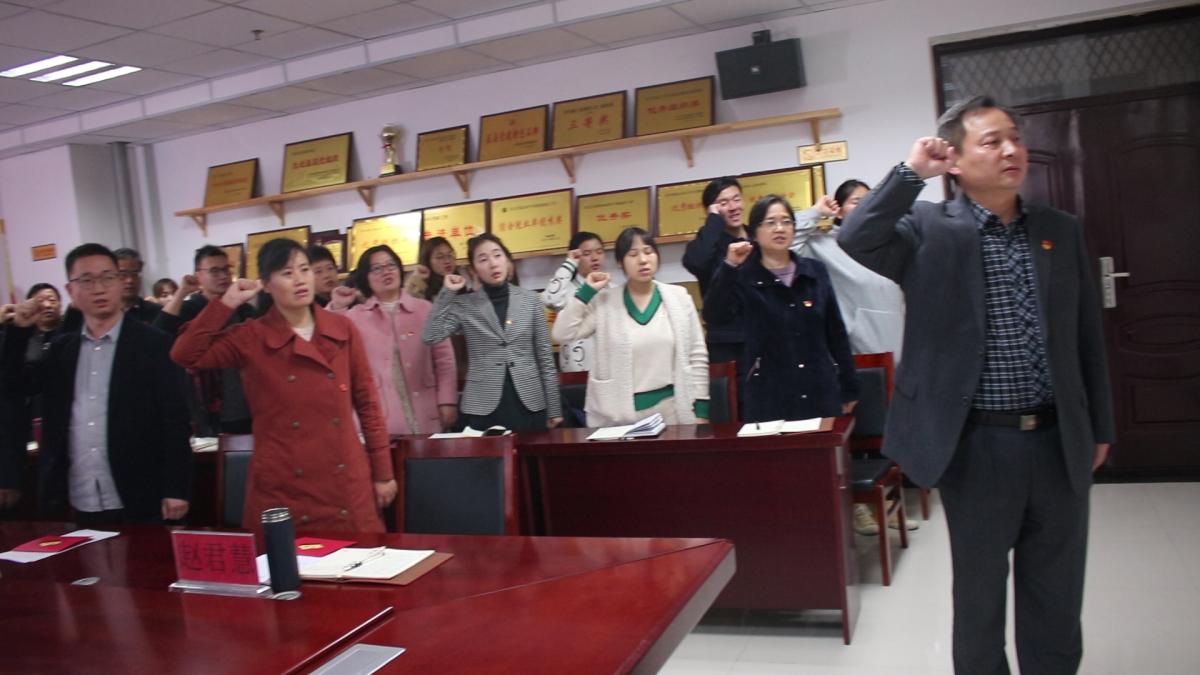 接着,党总支书记许涛同志带领所有与会师生面向鲜红的党旗、庄严重温入党誓词,并号召全体党员“不忘初心、牢记使命”,在教育教学工作中主动亮出党员身份,发挥先锋模范作用,为党旗增添光彩,为学院改革发展事业多做贡献。