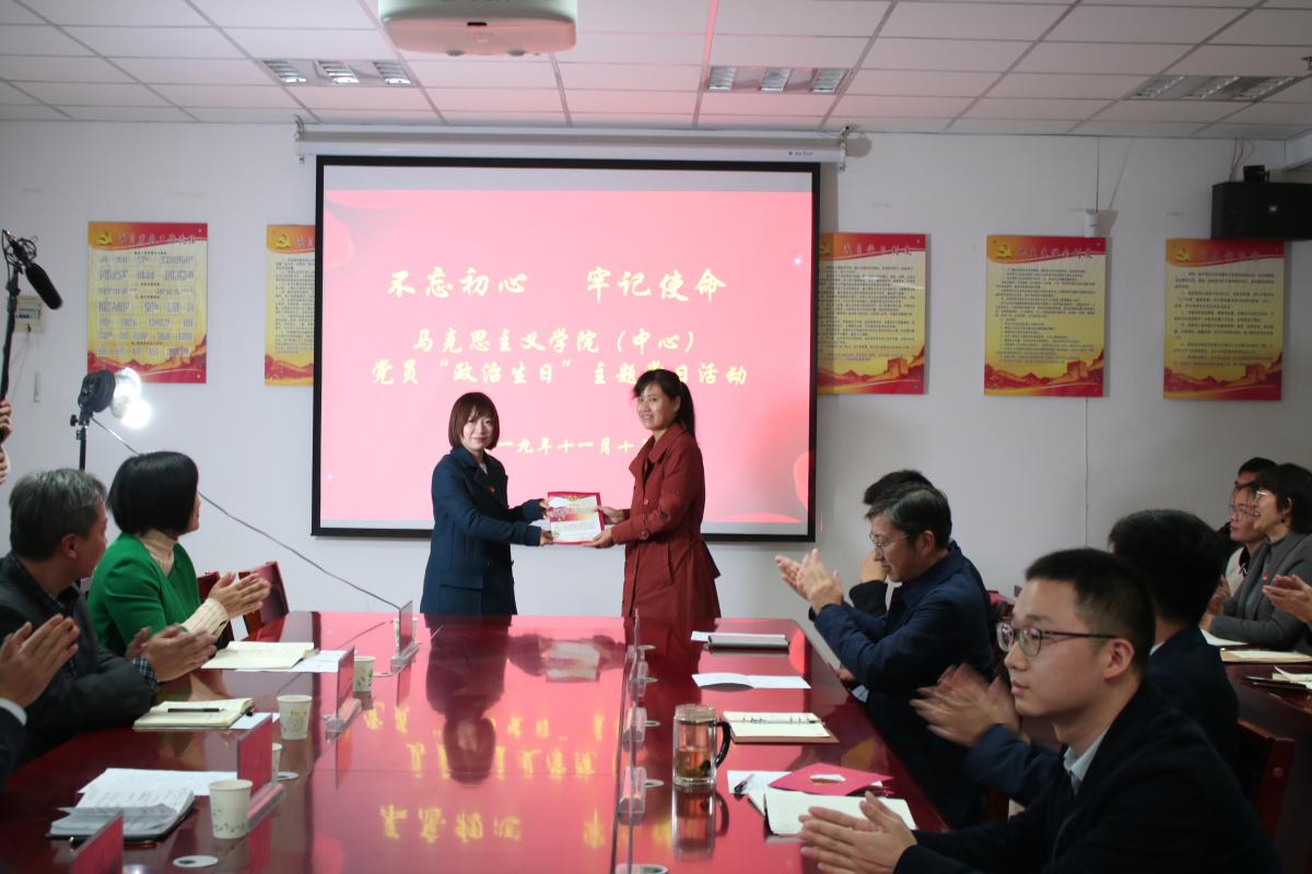 为使全体党员进一步领悟初心使命,坚定理想信念,提升党性修养,充分认识“不忘初心、牢记使命”主题教育的重要性,11月13日下午,马克思主义学院党总支在E-1130会议室举行党员“政治生日”主题党日活动。联点校领导、党委副书记孙海教授应邀出席此次活动。马克思主义学院全体教工党员和学生党员参加活动。