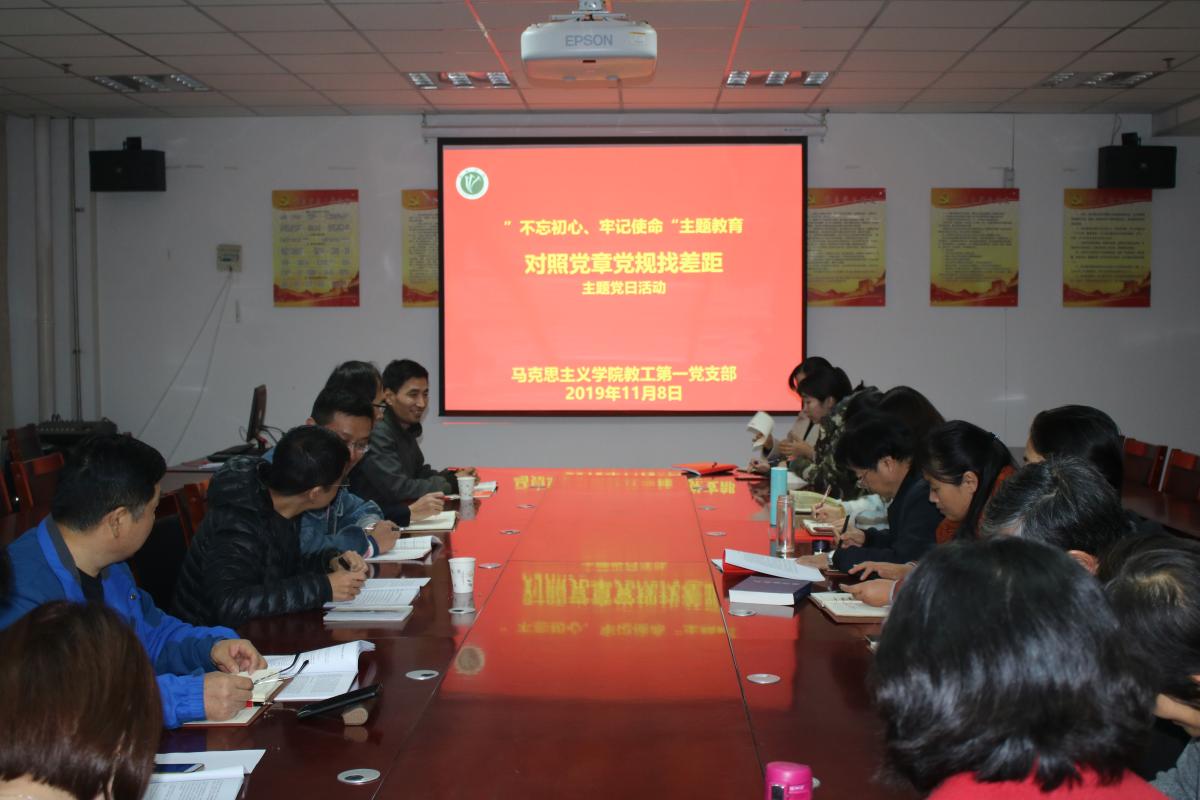 根据校党委印发的《中共许昌学院委员会“不忘初心、牢记使命”主题教育工作方案》的通知(校党【2019】79号)精神,紧紧围绕“守初心、担使命,找差距、抓落实”总要求和“理论学习有收获、思想政治受洗礼、干事创业敢担当、为民服务解难题、清正廉洁作表率”的目标任务,11月8日下午,我院教工第一支部在E1130会议室召开全体会议,对照党章党规找差距,会议由支部书记刘镭主持。
