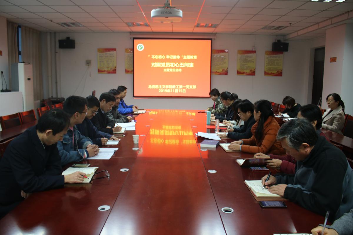 习近平总书记强调,不忘初心,方得始终。中国共产党人的初心和使命,就是为中国人民谋幸福,为中华民族谋复兴。这个初心和使命是激励中国共产党人不断前进的根本动力。11月15日,按照校党委印发的《中共许昌学院委员会“不忘初心、牢记使命”主题教育工作方案》要求,教工第一支部在E1130会议室召开“党员初心五问”主题党日活动,全体党员参加,会议由支部书记刘镭主持。