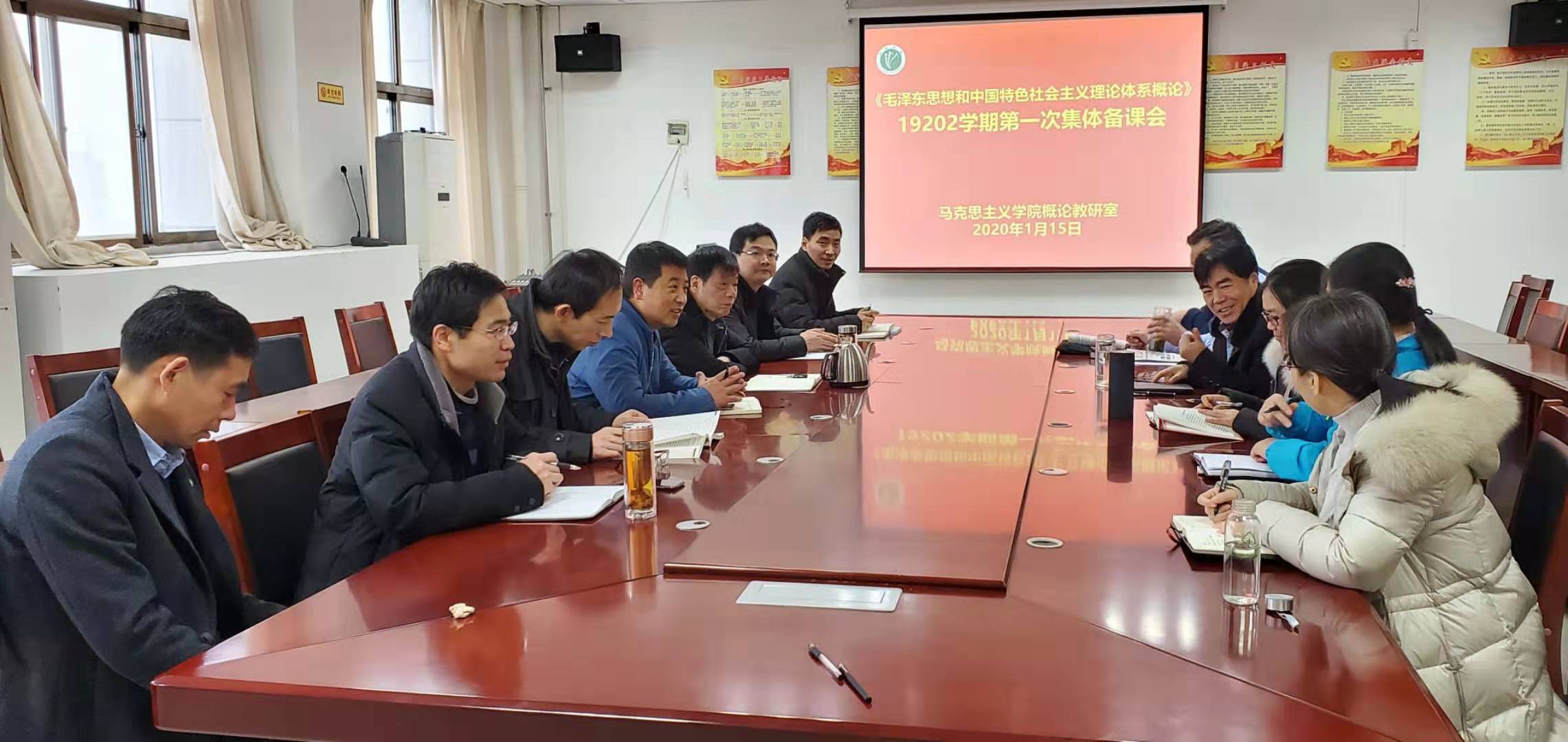 2020年1月15日上午,《毛泽东思想和中国特色社会主义理论体系概论》课程组在E1130会议室召开19292学期集体备课会,会议由教研室主任李文君主持,院长寇鸿顺和全体课程组成员参加。