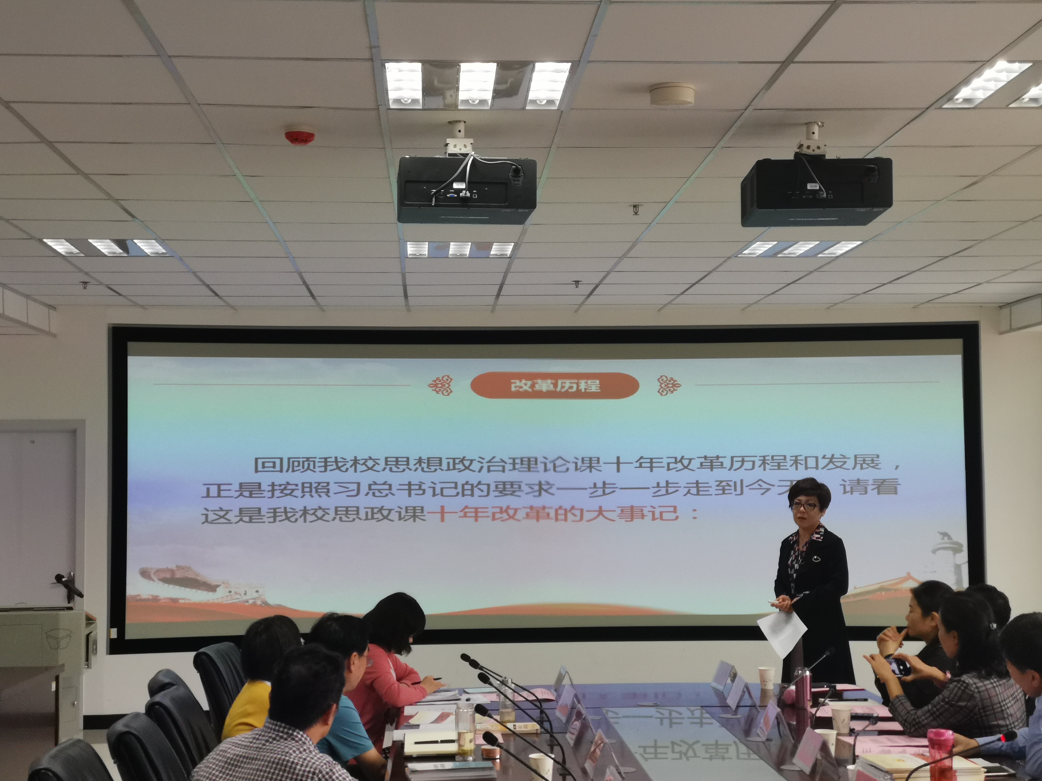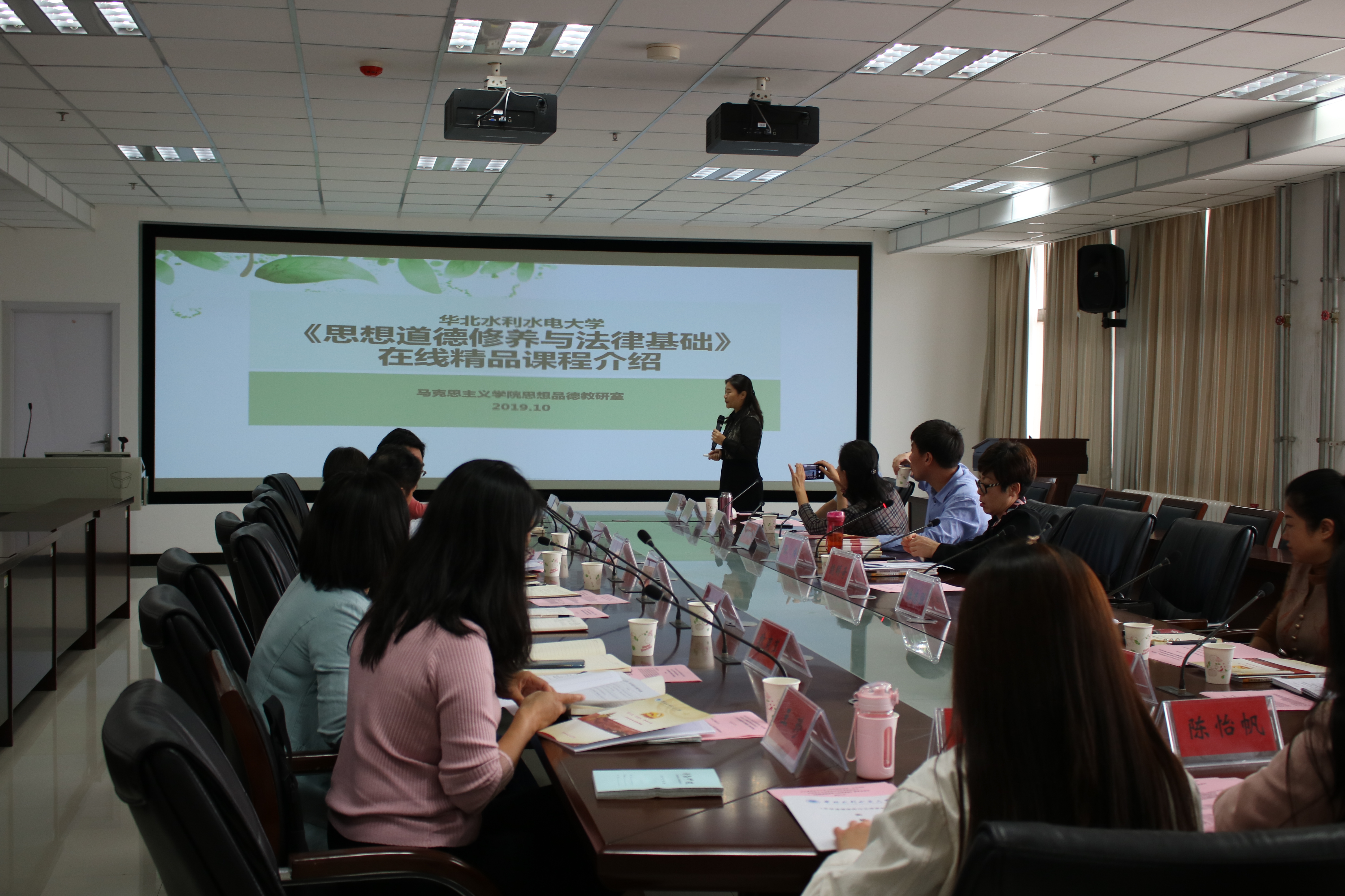 最后,华北水利水电大学马克思主义学院党委负责人张梅教授就《思想道德修养与法律基础》课程教学指导思想、课堂教学管理、线上线下混合式教学模式和课程思政等方面进行阐述和讲解,并作为集体备课主讲人对“绪论”部分教材和《专题教学指南》进行了示范性教学。