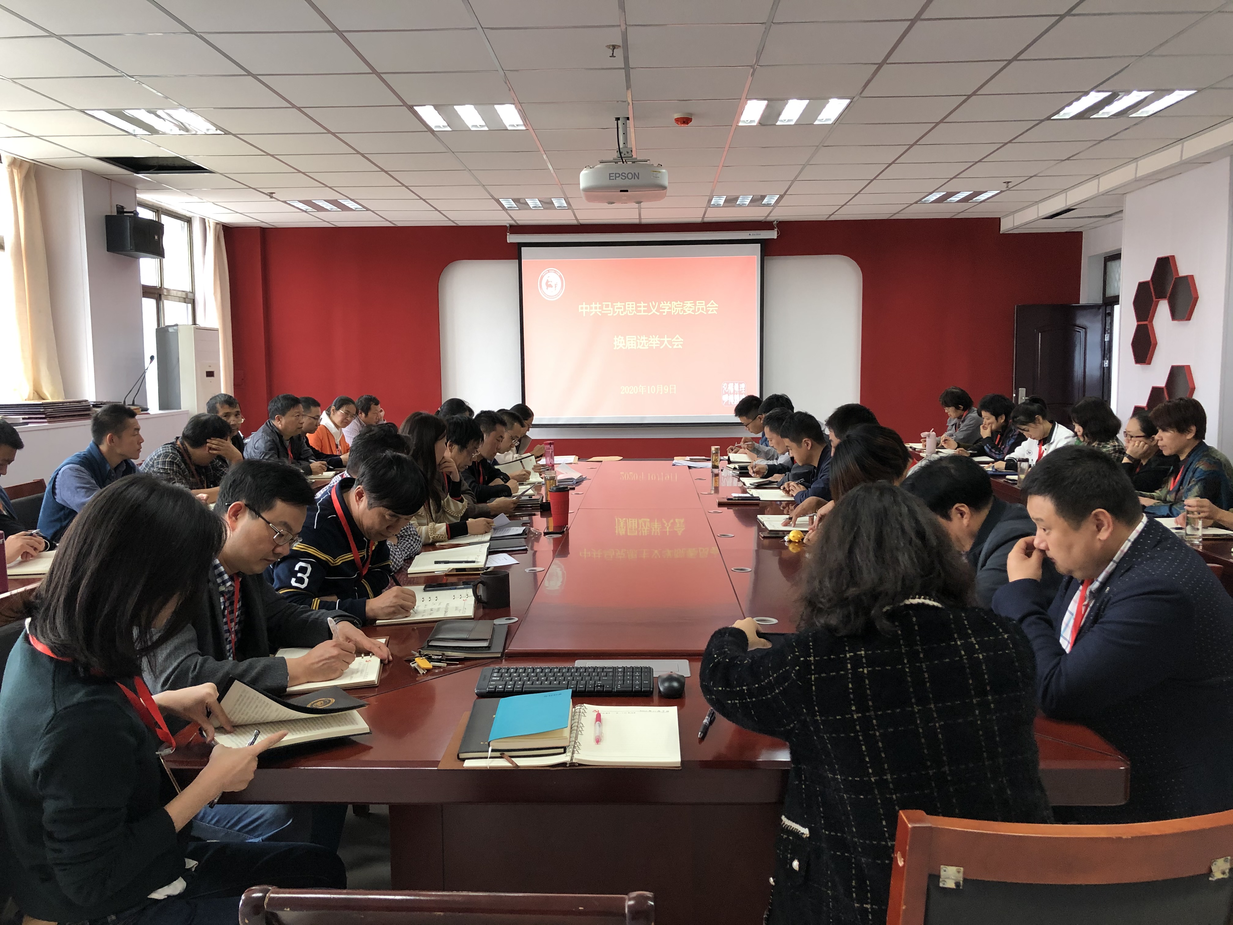 2020年10月9日,中共马克思主义学院委员会换届选举大会在1130会议室圆满召开,我院44名正式党员和6名预备党员出席会议,发展对象及入党积极分子列席会议,大会由院长寇鸿顺主持。