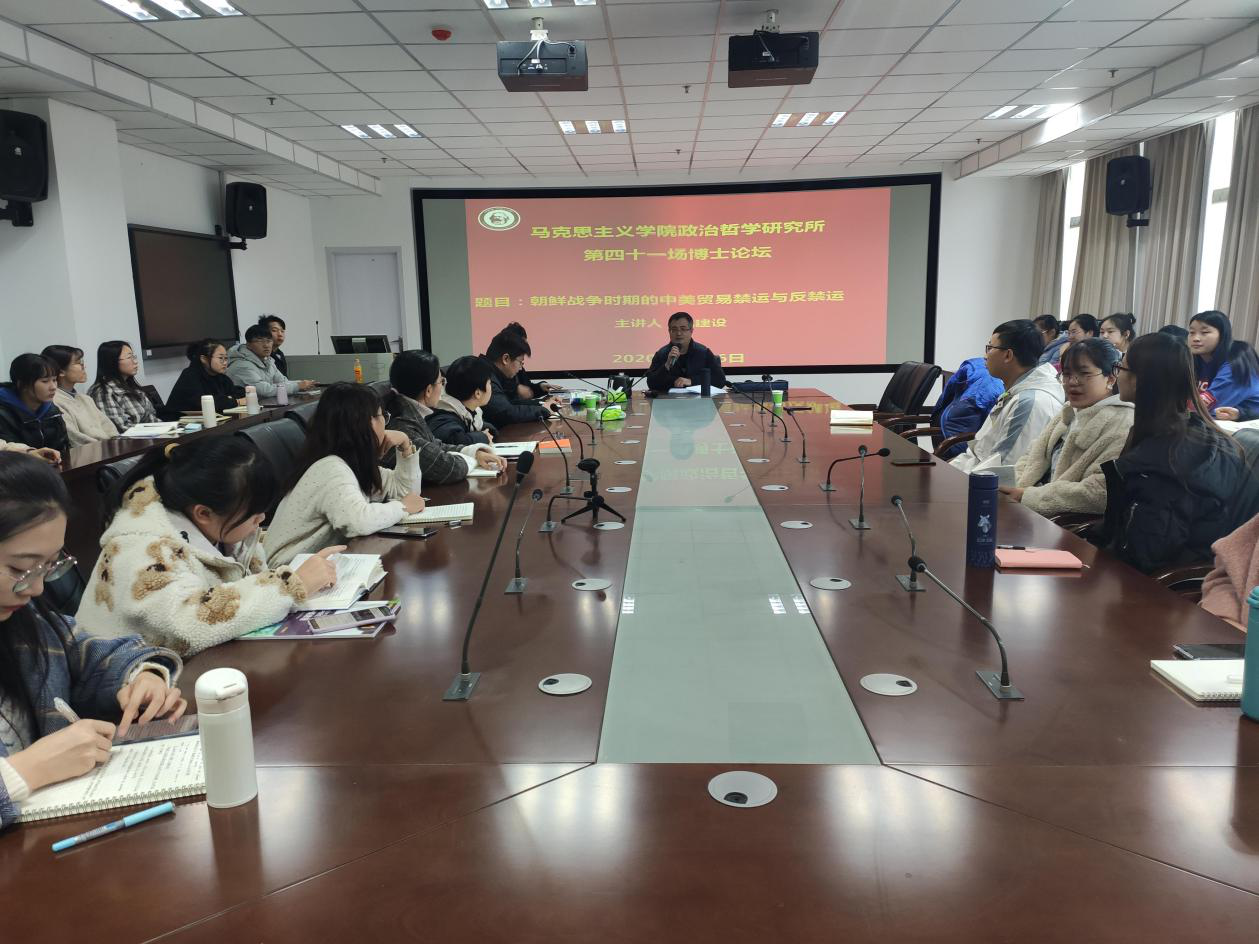 许昌学院马克思主义学院政治哲学研究所第四十一场博士论坛于二零二零年十二月六日在许昌学院文综楼727成功举办。报告题目为:“朝鲜战争时期的中美贸易禁运与反禁运”。此次论坛由尤建设博士主讲,许国林教授和王登科博士主评。尤建设博士先后承担《世界通史》、《现当代史》等课程。在《东南亚研究》、《南洋问题研究》、《西南师范大学学报》等期刊发表学术论文10余篇,出版专著一部,主持国家社科基金项目一项。
