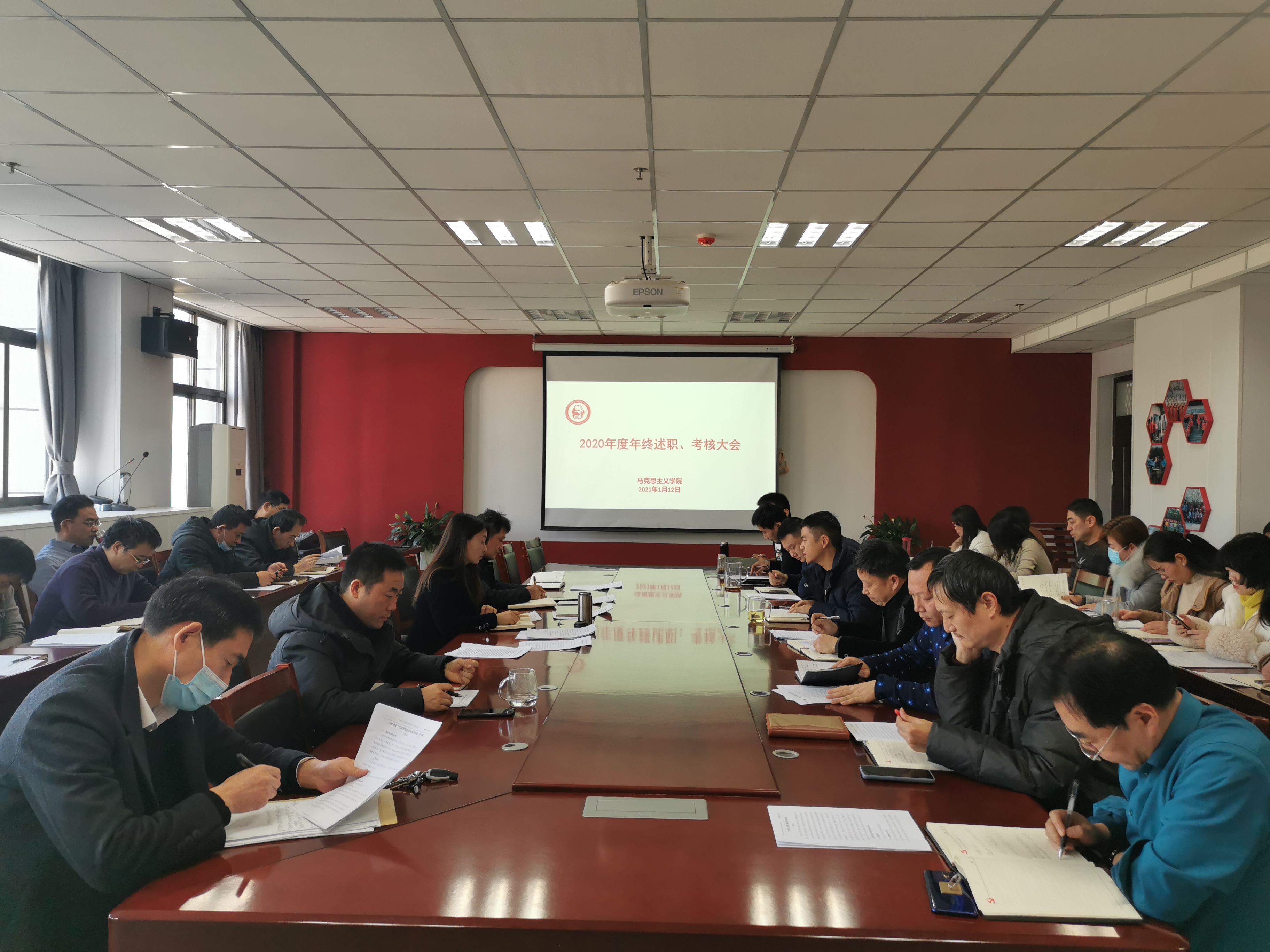 1月12日下午15:30,马克思主义学院党委在文综楼1130会议室召开2020年度年终述职、考核工作会议。全体教职工参加会议,会议由院党委书记谢依楠主持。