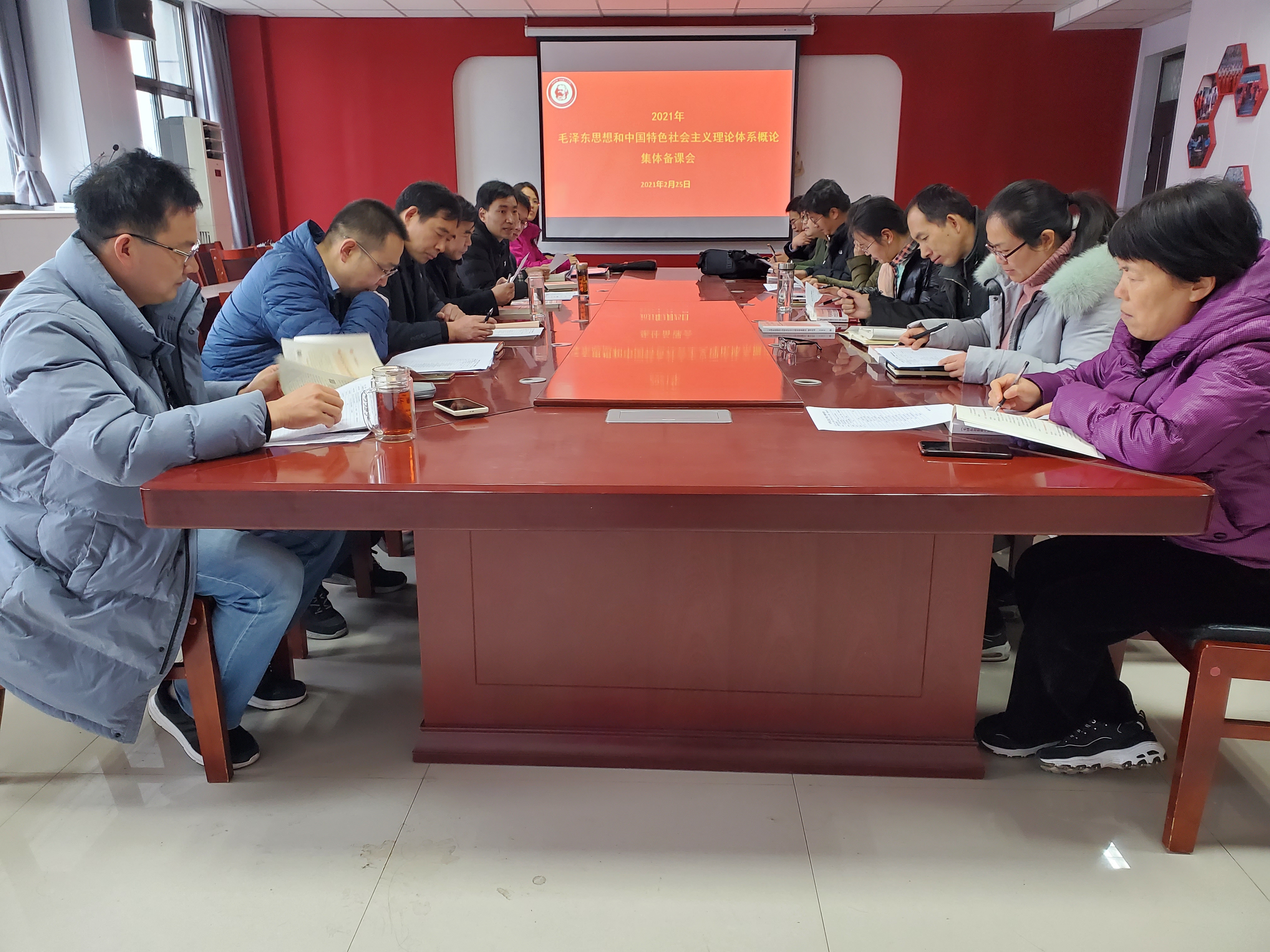 2021年2月25日10:00,概论教研室组织本学期担任《毛泽东思想和中国特色社会主义理论体系概论》的教师在E-1130会议室召开新学期集体备课会,会议由教研室主任李文君博士主持,林云飞副院长及课程组全体专兼职教师参加。
