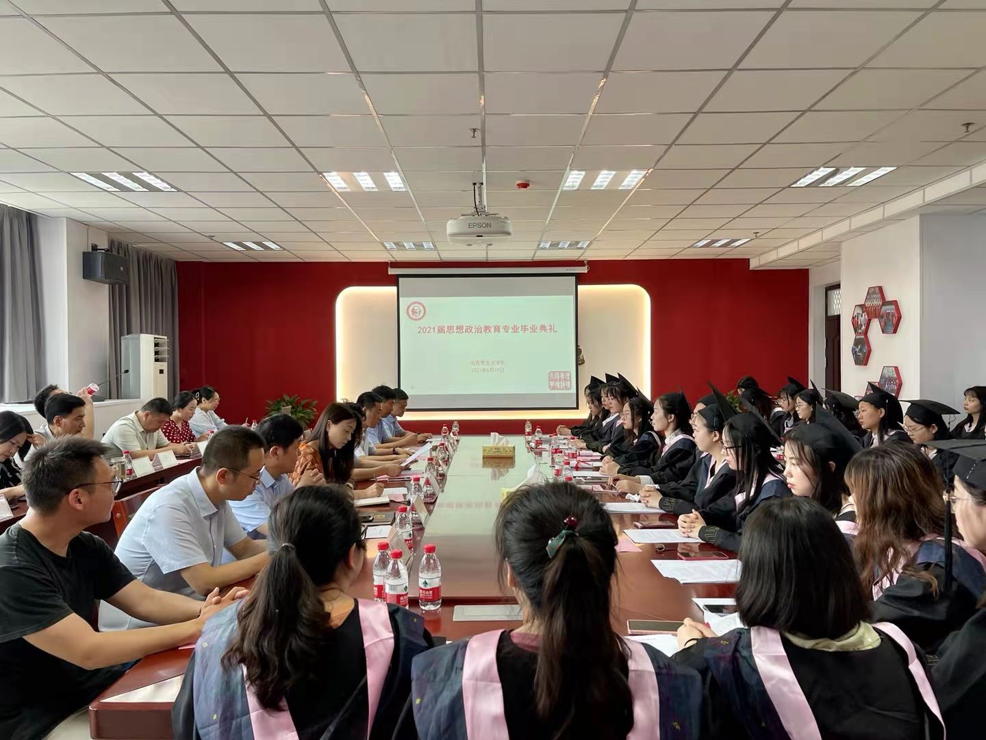 6月10日上午9点在文科综合楼1130室举行2021届思想政治教育专业毕业典礼。院党委书记谢依楠、院长寇鸿顺、中原农村发展研究中心主任兼副院长郭现军、党委副书记樊六辉、副院长林云飞、中原农村发展研究中心副主任杨海钦、中原农耕文化研究中心副主任、中原农耕文化博物馆副馆长朱志浩、思政教研室主任菅强、团委书记张静、组织员、思政专业课指导老师、辅导员以及全体2021届毕业生参加毕业典礼。典礼仪式由院党委书记谢依楠主持。