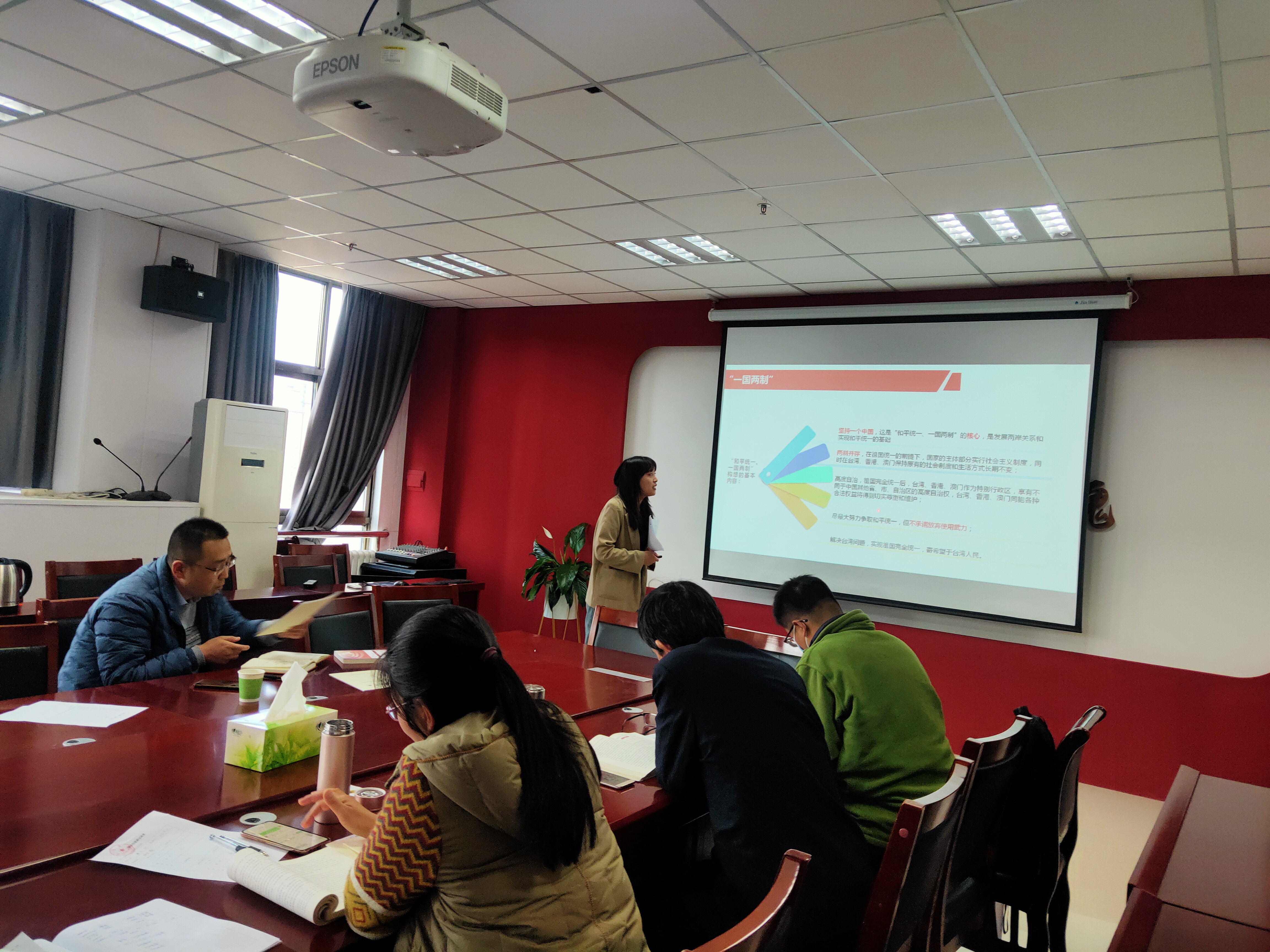 其次,各位思政课教师随即抽签,决定出场顺序,并逐一进行了精彩的分享。教研室根据各位老师的讲课情况开展互评,推荐3位老师参加学校的讲课比赛。