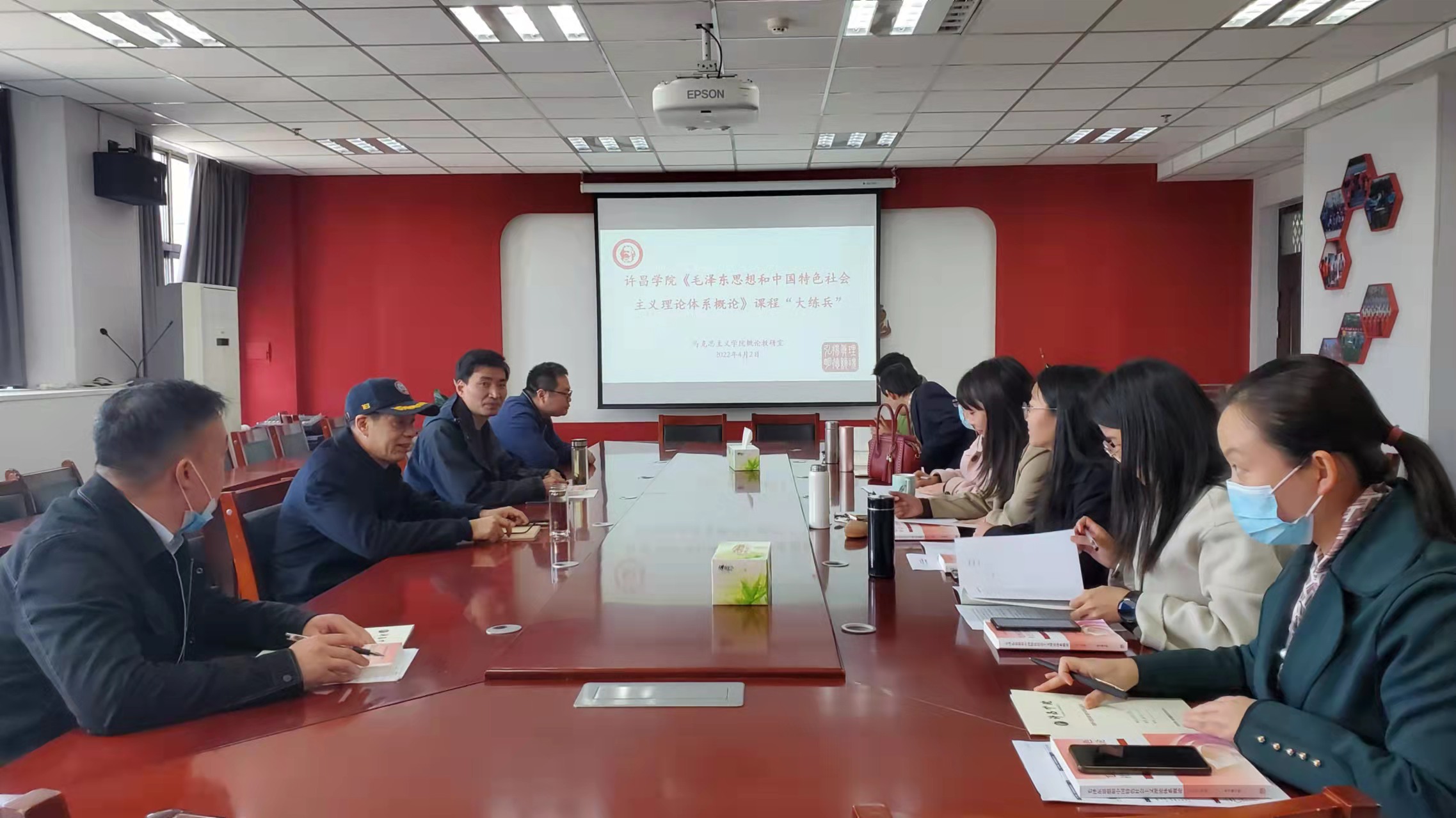 2022年4月2日,概论教研室在E-1130开展了《毛泽东思想和中国特色社会主义理论体系概论》课程“大练兵”活动,寇鸿顺院长、林云飞副院长到活动现场指导,概论课程组的15位老师参加“大练兵”活动。