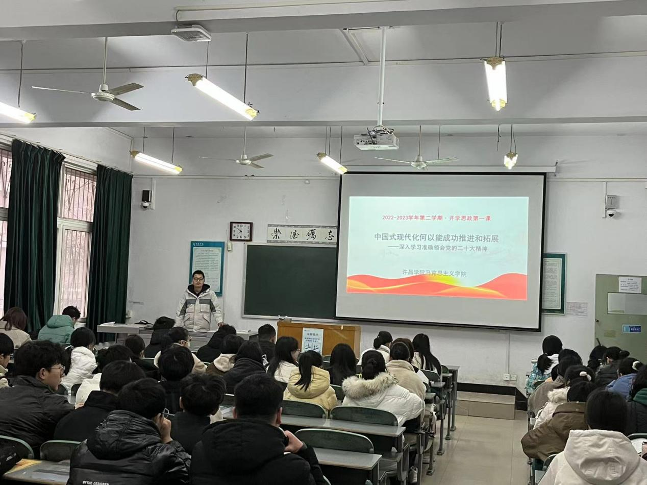 2023年2月13日,我校迎来了新学期线下教学开学第一课。马克思主义学院为确保教学秩序的正常运行,规范教学管理,谢依楠书记、寇鸿顺院长、郭现军主任带领主管学生工作的副书记、主管教学的副院长、教学管理人员深入各教学楼巡视教学工作,了解各班级线下教学第一课上课情况、教师授课安排、学生的上课状态和课堂到课率、教学设施是否完好等情况。