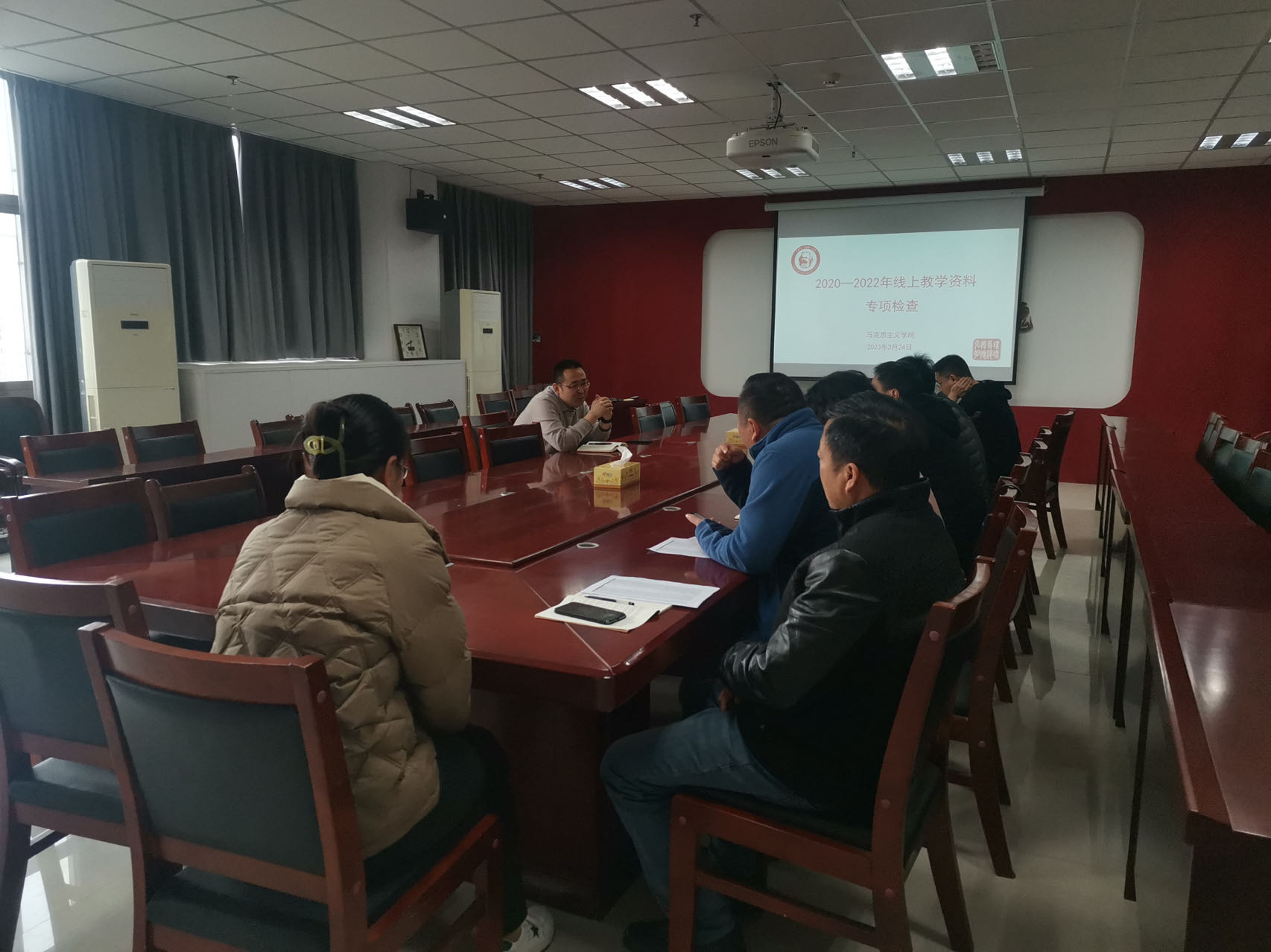 为进一步规范课程教学与考核资料,全面总结线上教学经验,3月24日上午,马克思主义学院在E-1130会议室开展2020—2022年线上教学材料专项检查活动,学院教学副院长林云飞、六个教研室主任、学院教学督导组组长滕卫双、院教务办全体成员参加,此次活动由教学副院长林云飞主持。