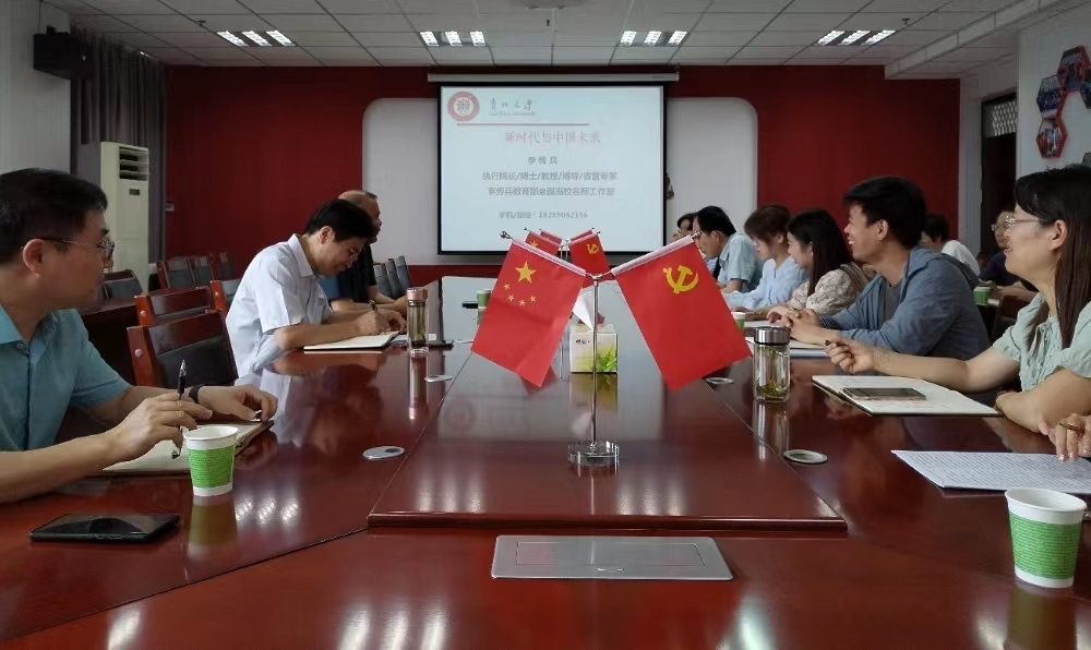 6月21日下午,贵州大学李传兵教授应邀在我院1130会议室以“新时代与中国未来”为题作学术报告。报告会由我院周耀宏院长主持,校党委办公室屈鑫涛副主任、我院林云飞副院长参会,我院师生30余人聆听了报告。