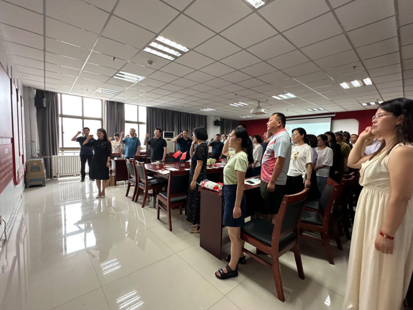 最后,与会党员教师面向党旗庄严宣誓重温入党誓词。