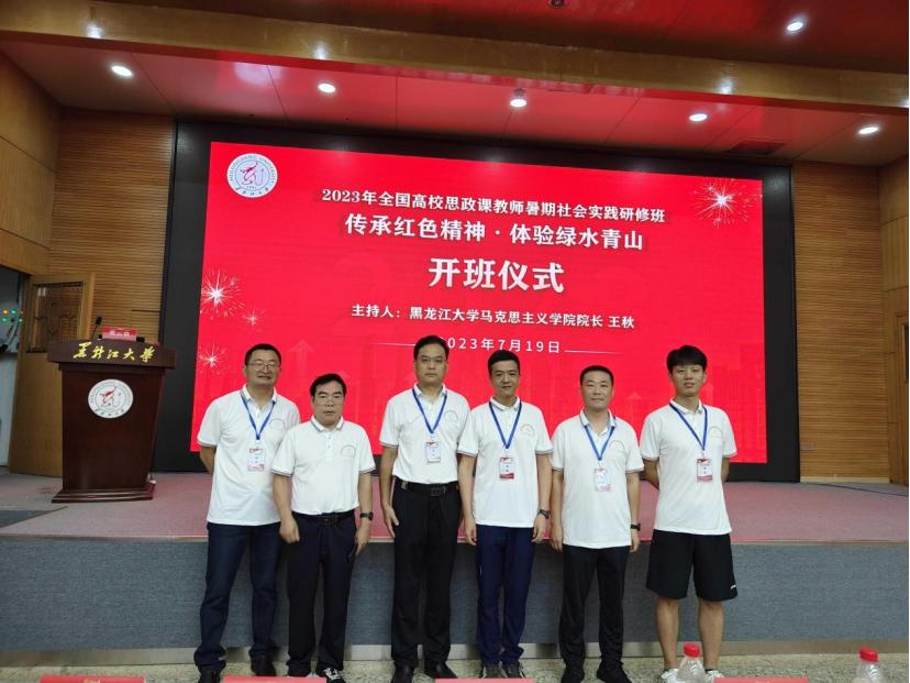 为深入学习习近平新时代中国特色社会主义思想,认真贯彻落实党的二十大精神,深刻领会习近平总书记在学校思想政治理论课教师座谈会和视察中国人民大学的重要讲话精神,对标《关于深化新时代学校思想政治理论课改革创新的若干意见》《教育部办公厅关于开展2023 年高校思想政治理论课教师研修工作的通知》(社科厅函 12 号)等文件要求,切实提升思政课教师职业素养和教学科研能力,2023年7月18日至24日,我院部分思政课专职教师赴全国高校思想政治理论课教师研修基地(黑龙江大学)开展了为期一周的暑期社会实践研修活动。