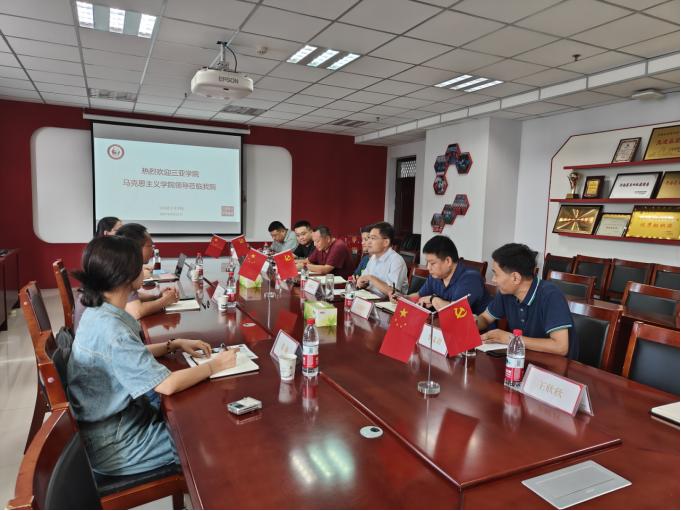 2023年8月21日,三亚学院马克思主义学院院长王功名一行莅临我院进行工作交流。我院在马克思主义学院会议室召开座谈交流会,院长周耀宏、副书记岳凯声,办公室、教务办负责人及部分在校的教研室主任参加座谈会,院长周耀宏主持座谈会。