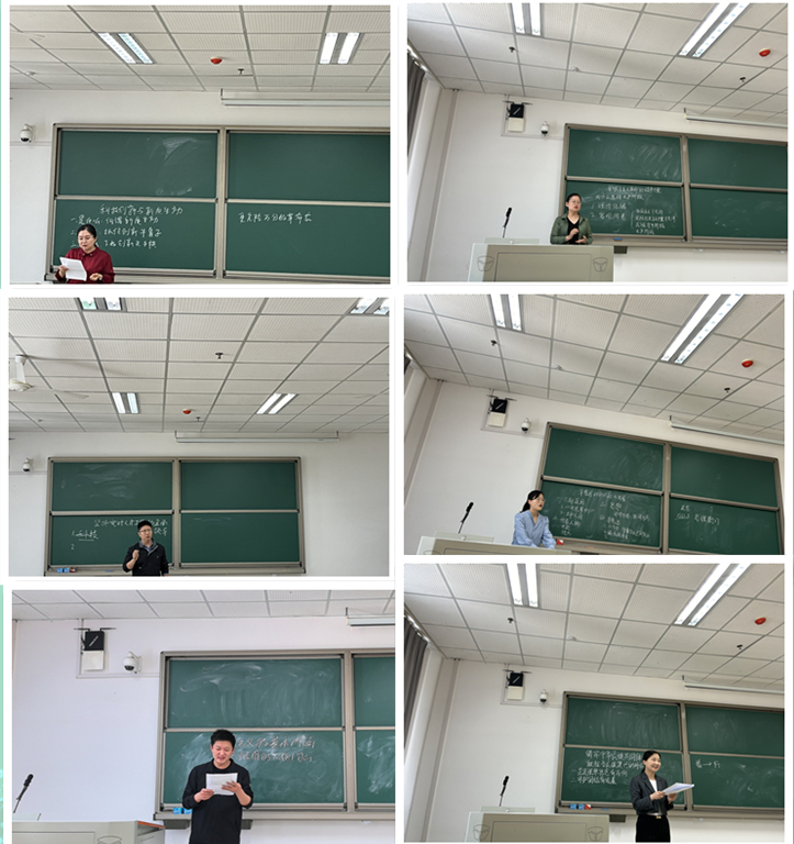 谢书记作总结讲话。首先,思政课教师要具有扎实的理论功底,以“立德树人”为宗旨,把新时代生动实践中的鲜活案例带进课堂,理论联系实际,深入浅出阐释理论;其次,要加强教学语言的训练,教学语言要准确、严谨,有逻辑性;再次,要有问题意识,做好板书设计,使板书更加美观;最后,要有教姿教态,多角度学习和练习,形成自己的教学风格和特点。