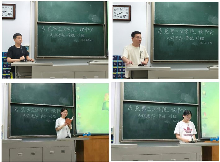 本次读书会各年级选取的阅读书目分别是毛泽东同志的《矛盾论》、张志伟的《写给大众的西方哲学》、马克思的《<政治经济学批判>序言》《资本论》第一卷。读书会前,各年级学生根据所选取的书目自行到图书馆借阅或从网上下载电子版进行阅读,在阅读过程中同学们结合自身学习生活实际,将自己的所思、所想、所感、所悟形成文字撰写下来,在会上分享给其他同学。点评专家和辅导员老师做点评发言和总结。