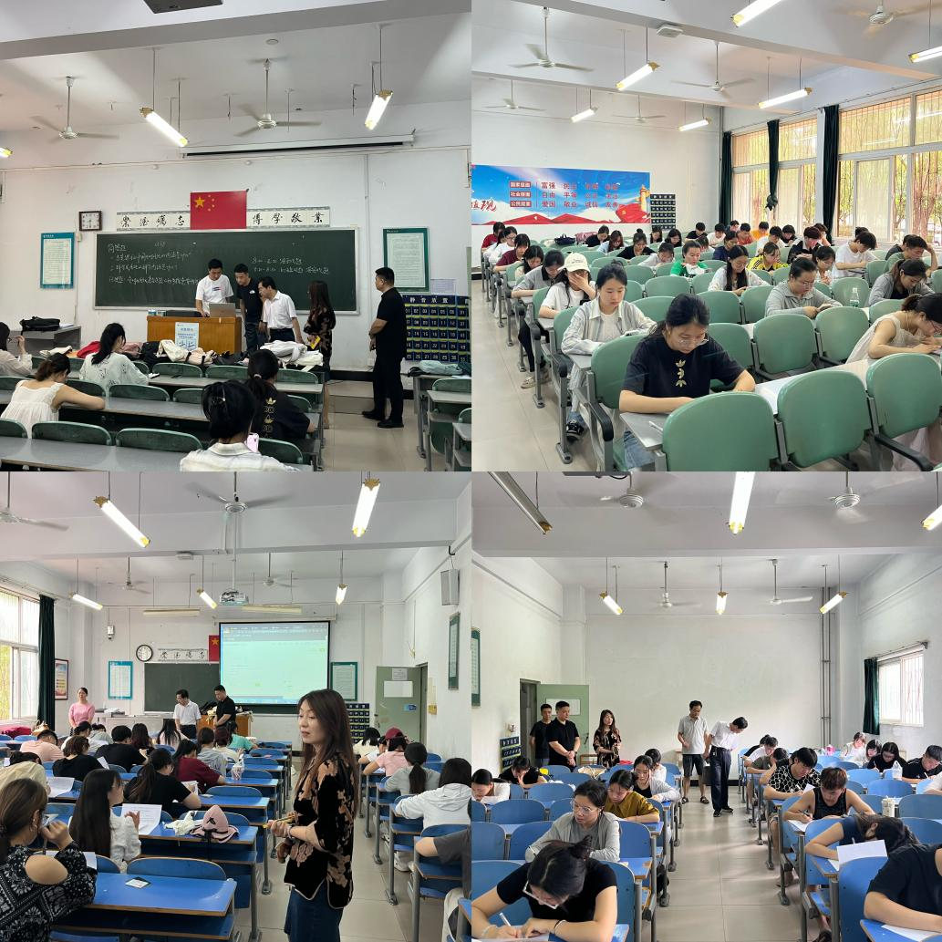 6月17日至21日,根据学校和我院期末考试工作安排,我院党委书记谢依楠、院长周耀宏、党委副书记岳凯声、副院长林云飞、菅强等人深入考场一线对2023-2024学年第二学期思政课期末考试秩序、考风考纪进行检查和巡查。