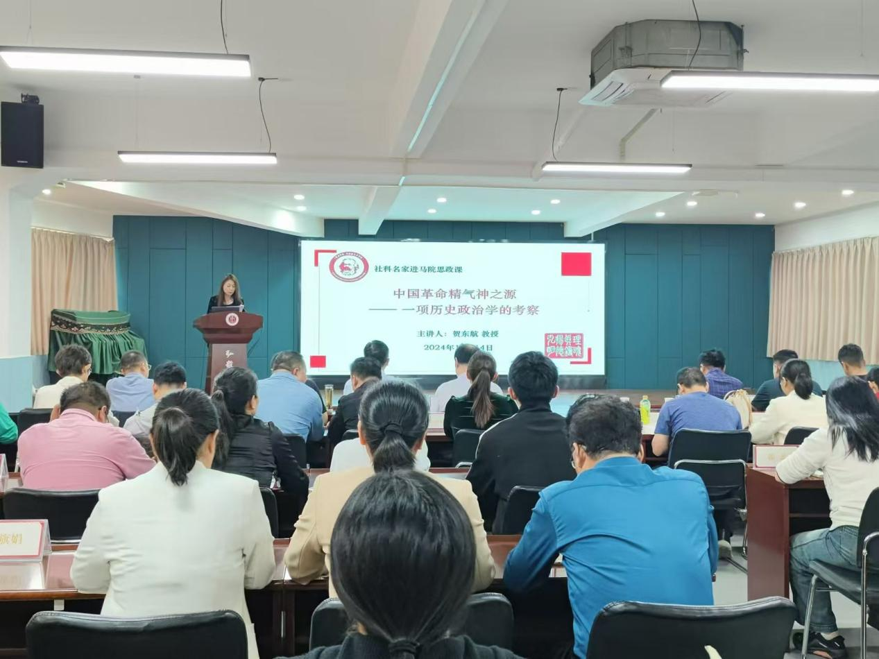 为进一步深入学习贯彻党的二十届三中全会精神,提升教师政治理论素养,10月14日下午,学校在弘毅书院举行“社科名家进马院思政课”活动。本次活动邀请到复旦大学贺东航教授,以《中国革命精气神之源——一项历史政治学的考察》为题向马克思主义学院、文史与传媒学院、法学院、教育学院、商学院等5个学院的相关专业老师作报告。此次活动由马克思主义学院党委书记谢依楠主持,60余名教师参加了本次活动。