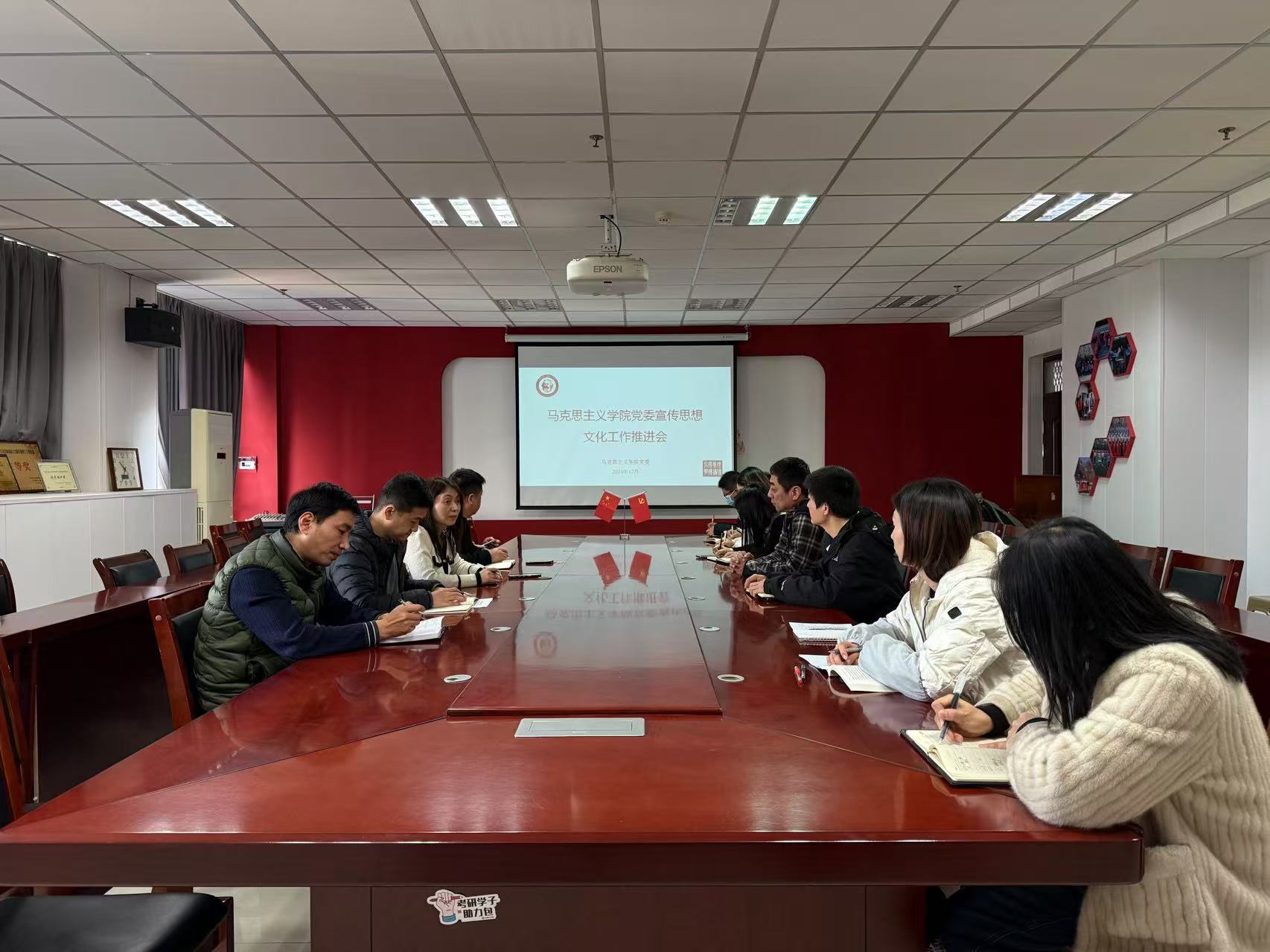 2024年12月5日,马克思主义学院党委召开宣传思想文化工作推进会,部署党建宣传相关工作。党委书记谢依楠、副书记岳凯声和各党支部书记、副书记、宣传委员参加会议。