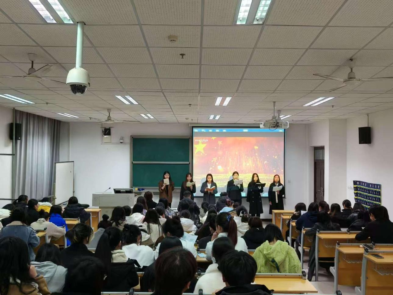 2024年12月2日,马克思主义学院于文综楼304举办以“歌颂传统文化,弘扬爱国精神”为主题的诗歌朗诵比赛,比赛邀请菅强副院长、杨亚峰老师、樊晓歌老师担任评委,2023级86名学生积极参加。