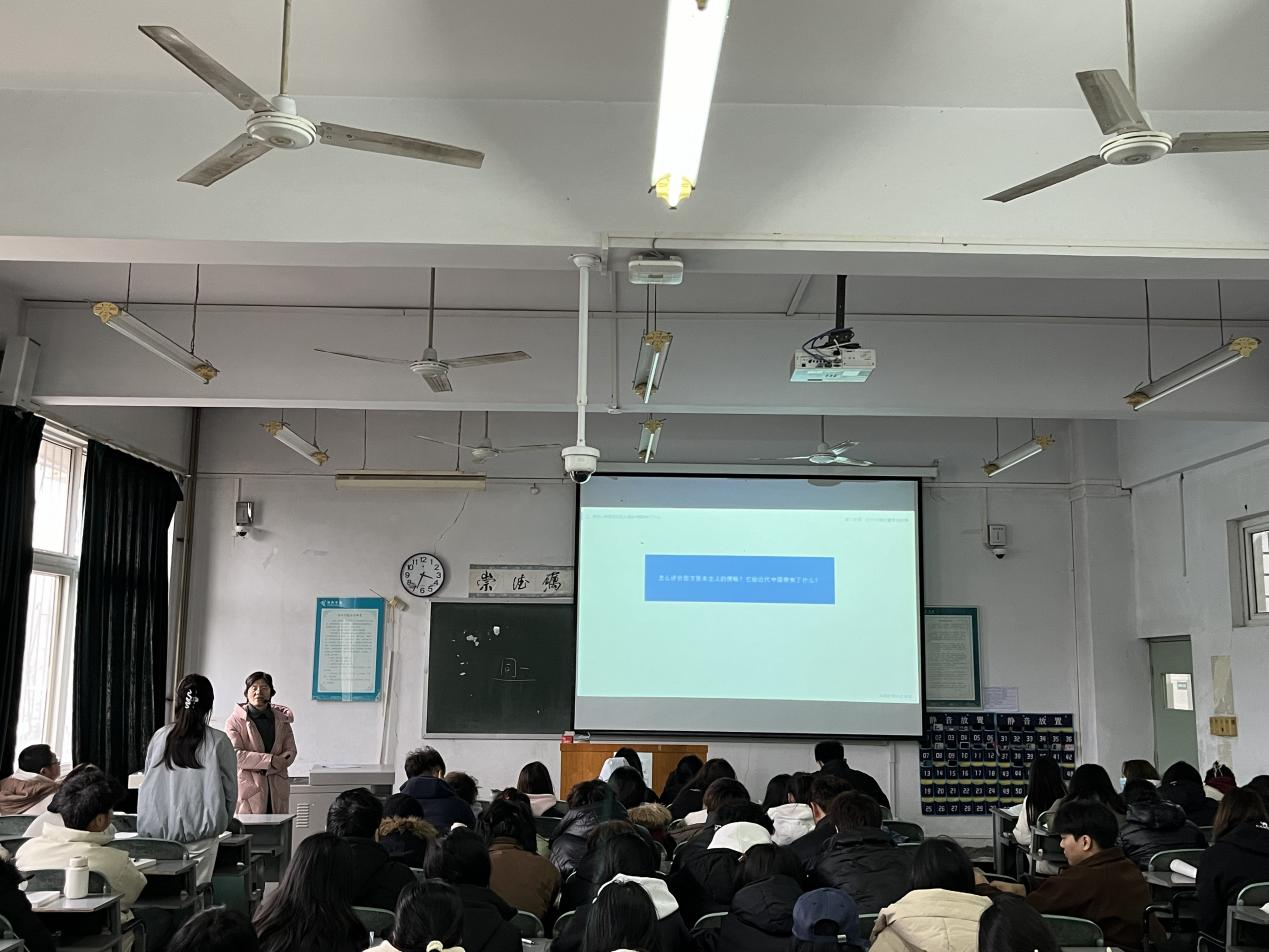 校党委副书记梁予昉一行听取了王卫才老师、滕卫双老师讲授的《毛泽东思想和中国特色社会主义理论体系概论》课程以及陈会娟老师讲授的《中国近现代史纲要》课程。在课堂上,三位老师注重教学设计,讲解详略得当、条理清晰,能够巧妙运用多媒体技术,调动学生参与性,将知识传授、能力培养与素质提升有机融合,展现出良好的教学风貌。