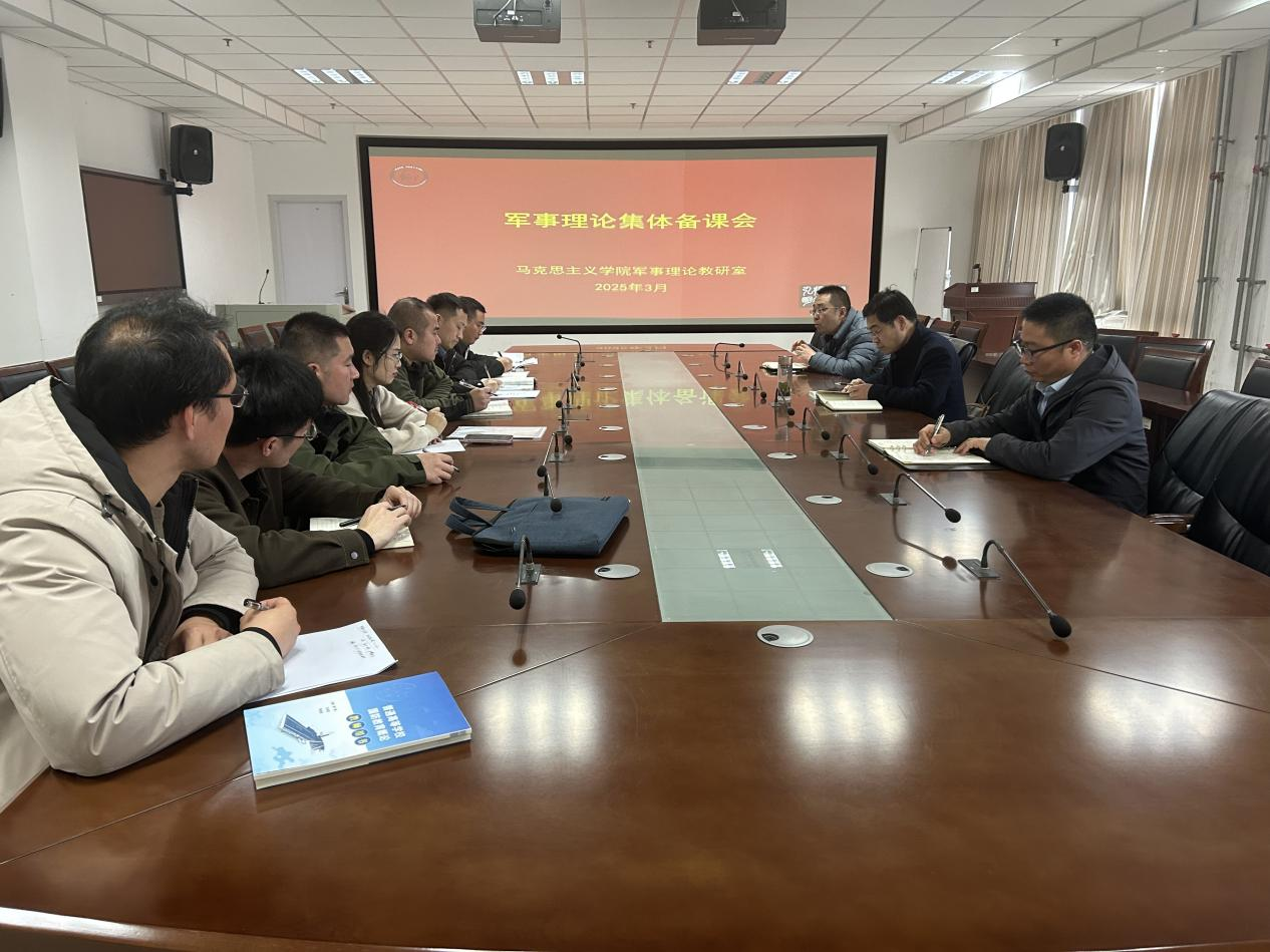 3月7日上午,教务处、马克思主义学院(军事理论教研室)召开军事理论课集体备课会。马克思主义学院院长周耀宏、教务处副处长张成兴、副院长林云飞参加备课会并参与讨论。会议由林云飞主持,本学期全体军事理论课任课教师参加备课会。